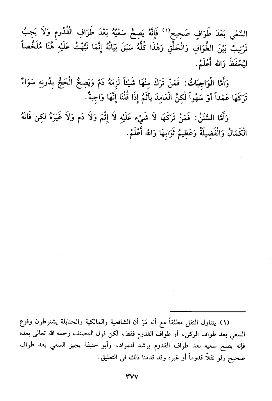 السَّعْي بَعْدَ طَوَافٍ صَحِيح (¬1) فَإِنَّهُ يَصِحُّ سَعْيُهُ بَعْدَ طَوَافِ الْقُدُومِ وَلاَ يَجبُ تَرْتيبٌ بَيْنَ الطَوَافِ وَالْحَلقِ وَهذَا كُلهُ سَبقَ بيانُهُ إِنَّمَا نبَّهْتُ عَلَيْهِ هُنَا مُلَخَّصاً ليُحْفَظَ وَالله أَعْلَمُ.