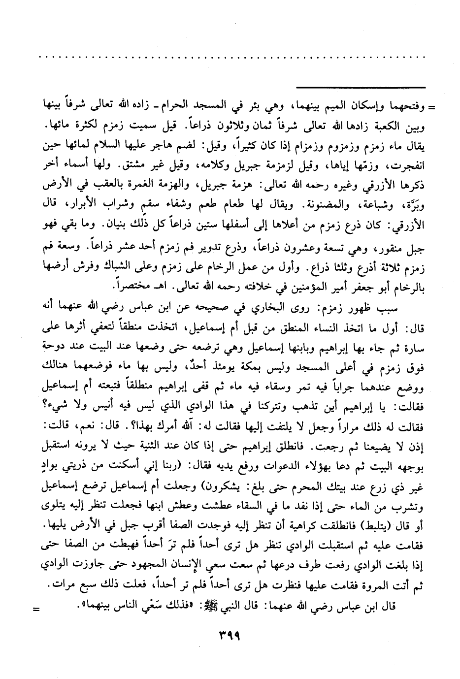 قال ابن عباس رضي الله عنهما: قال النبي - صلى الله عليه وسلم -: "فذلك سَعْي الناس بينهما". =