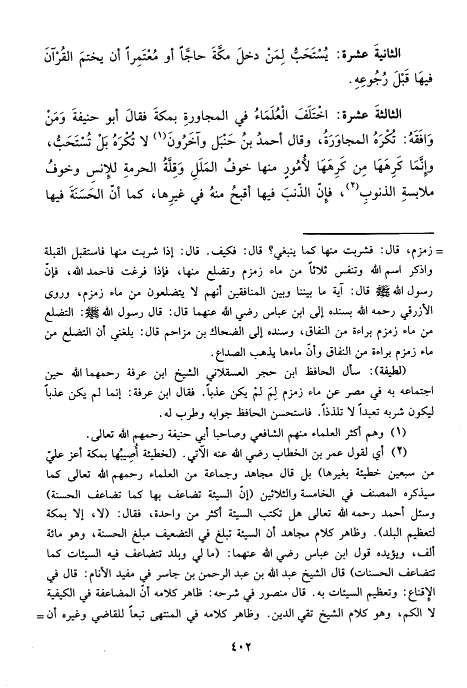 الثانيةَ عشرة: يُسْتَحَب لِمَنْ دخلَ مكَّةَ حاجاً أو مُعْتَمِراً أن يختمَ القُرْآنَ فيهَا قَبْلَ رُجُوعِهِ.