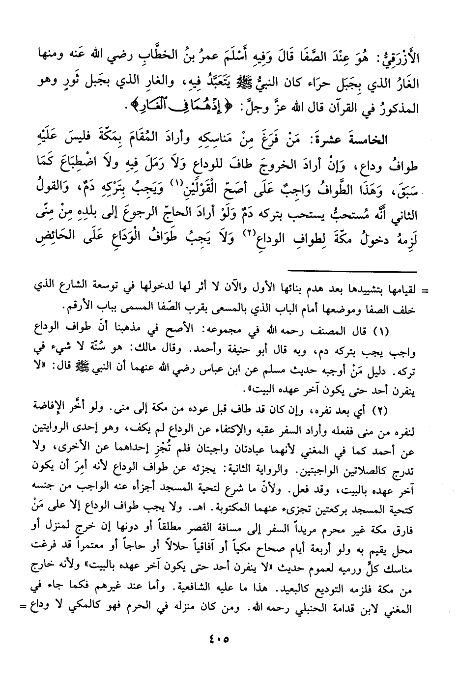 الخامسةَ عشرةَ: مَنْ فَرَغَ مِنْ مَناسِكِهِ وأرادَ المُقَامَ بِمَكّةَ فليسَ عَلَيْهِ طوافُ وداع، وإنْ أرادَ الخروجَ طافَ للوداع وَلاَ رَمَلَ فِيهِ ولاَ اضْطِبَاعَ كَمَا سَبقَ، وَهَذَا الطَّوافُ وَاجِب عَلَى أصَحّ الْقَوْلَيْنِ (¬1) وَيَجِبُ بِتَرْكِهِ دَمٌ، وَالقولُ الثاني أنه مُستحبُّ يستحب بتركه دَم وَلَوْ أرادَ الحاجّ الرجوعَ إلى بلده مِنْ مِنى لَزِمهُ دخولُ مكّةَ لِطوافِ الوداعِ (¬2) وَلاَ يَجِبُ طَوَافُ الْوَدَاعِ عَلَى الحَائِضِ