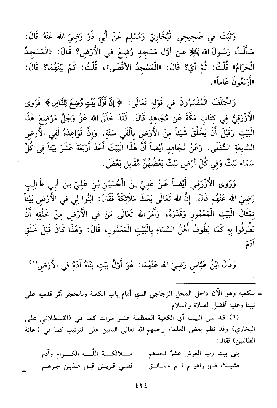 بنى بيت رب العرش عشرٌ فخذهم ... ملائكة الله الكرام وآدم