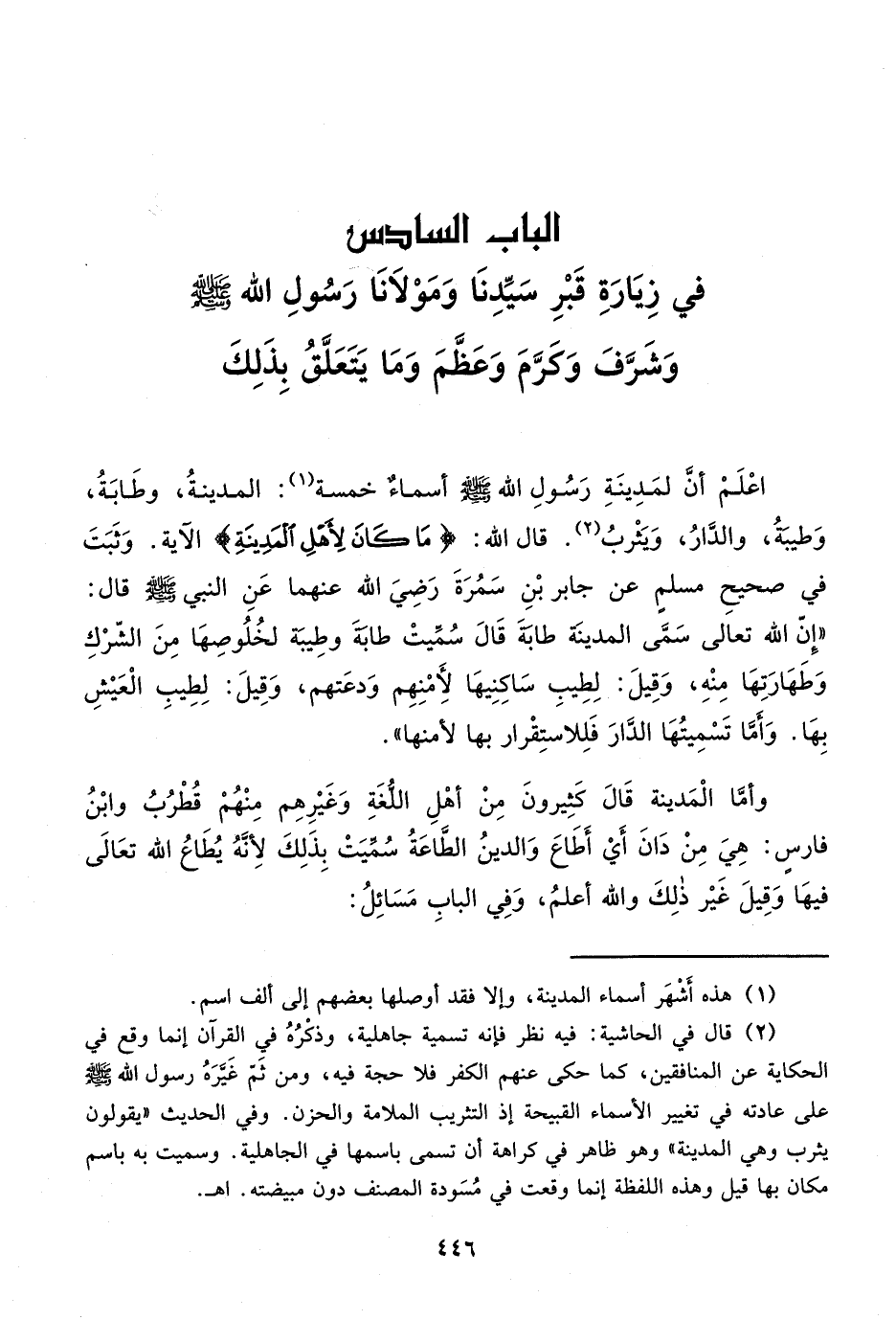 في زِيَارَةِ قَبْرِ سَيِّدِنَا وَمَوْلاَنَا رَسُولِ الله - صلى الله عليه وسلم - وَشَرَّفَ وَكَرَّمَ وَعَظَّمَ وَمَا يَتَعَلَّقُ بِذَلِكَ