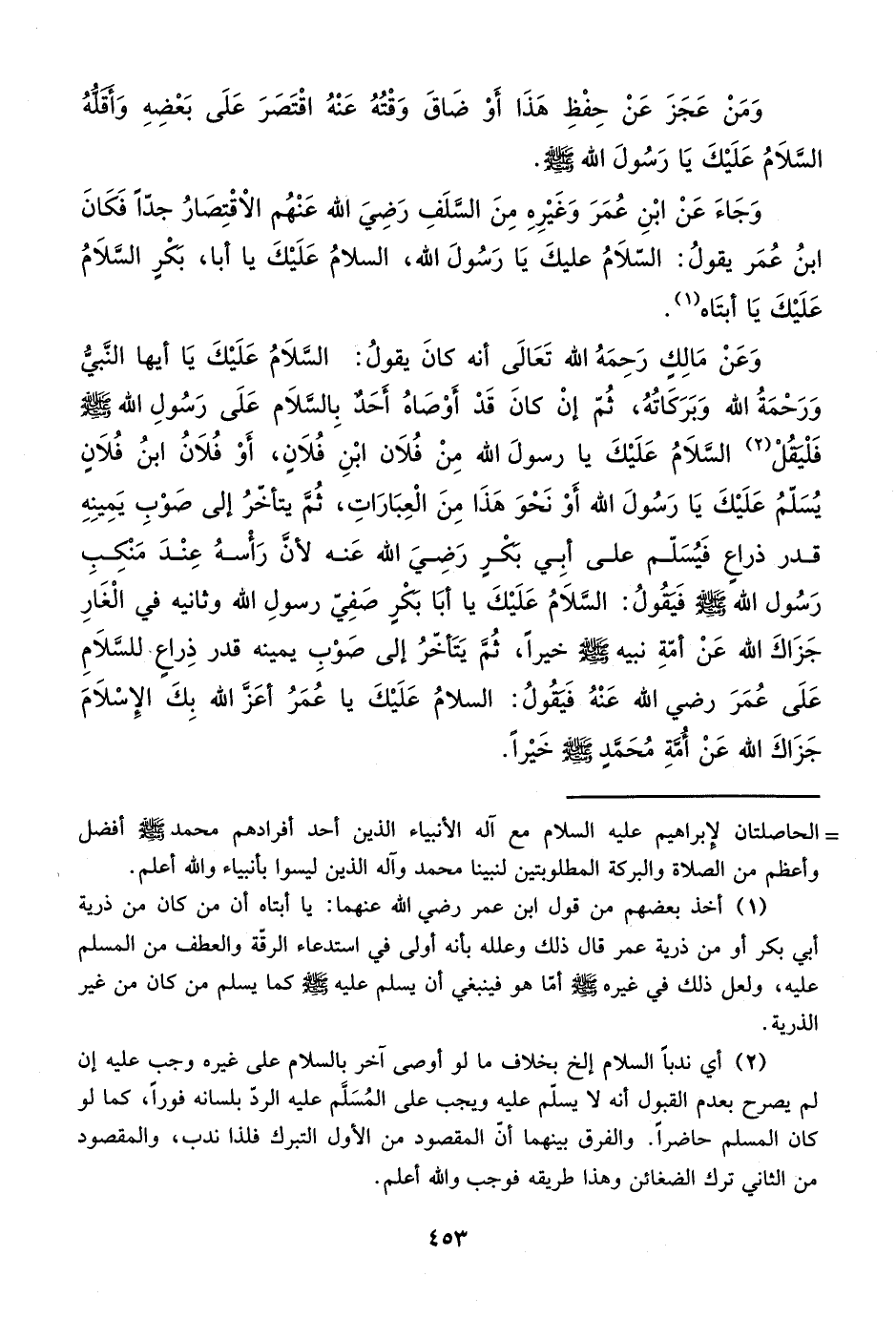 وَمَنْ عَجَزَ عَنْ حِفْظِ هَذَا أَوْ ضَاقَ وَقْتُهُ عَنْهُ اقْتَصَرَ عَلَى بَعْضِهِ وَأَقلهُ السَّلاَمُ عَلَيْكَ يَا رَسُولَ الله - صلى الله عليه وسلم -.