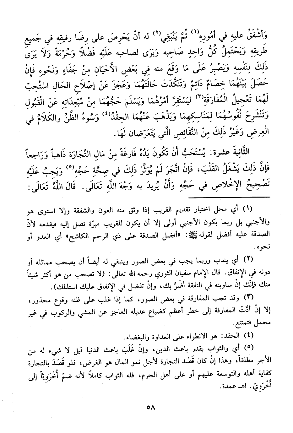 (¬2) أي يندب وربما يجب في بعض الصور وينبغي له أيضاً أن يصحب مماثله أو دونه في الإِنفاق. قال الإِمام سفيان الثوري رحمه الله تعالى: (لا تصحب من هو أكثر شيئاً منك فإنك إنْ ساويته في النفقة أضَر بك، وإنْ تفضل في الإِنفاق عليك استذلك).