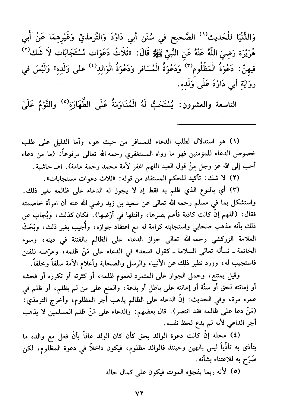 وَالدُّنْيَا للْحَديث (¬1) الصَّحيح في سُنَن أبي دَاوُدَ وَالتِّرمذي وَغَيْرِهِمَا عَنْ أَبي هُرَيْرَة رَضِيَ اللهُ عَنْهُ عَنِ النَبى - صلى الله عليه وسلم - قالَ: "ثَلاَثُ دَعَوَات مُسْتَجَابَات لاَ شَك (¬2) فيهِن: دَعْوَةُ الْمَظْلُومِ (¬3) وَدَعْوَةُ الْمُسَافر وَدَعْوَةُ الْوَالِدِ (¬4) على وَلَدِهِ" وَلَيْسَ في روَايه أبي دَاوُدَ عَلَى وَلَده.