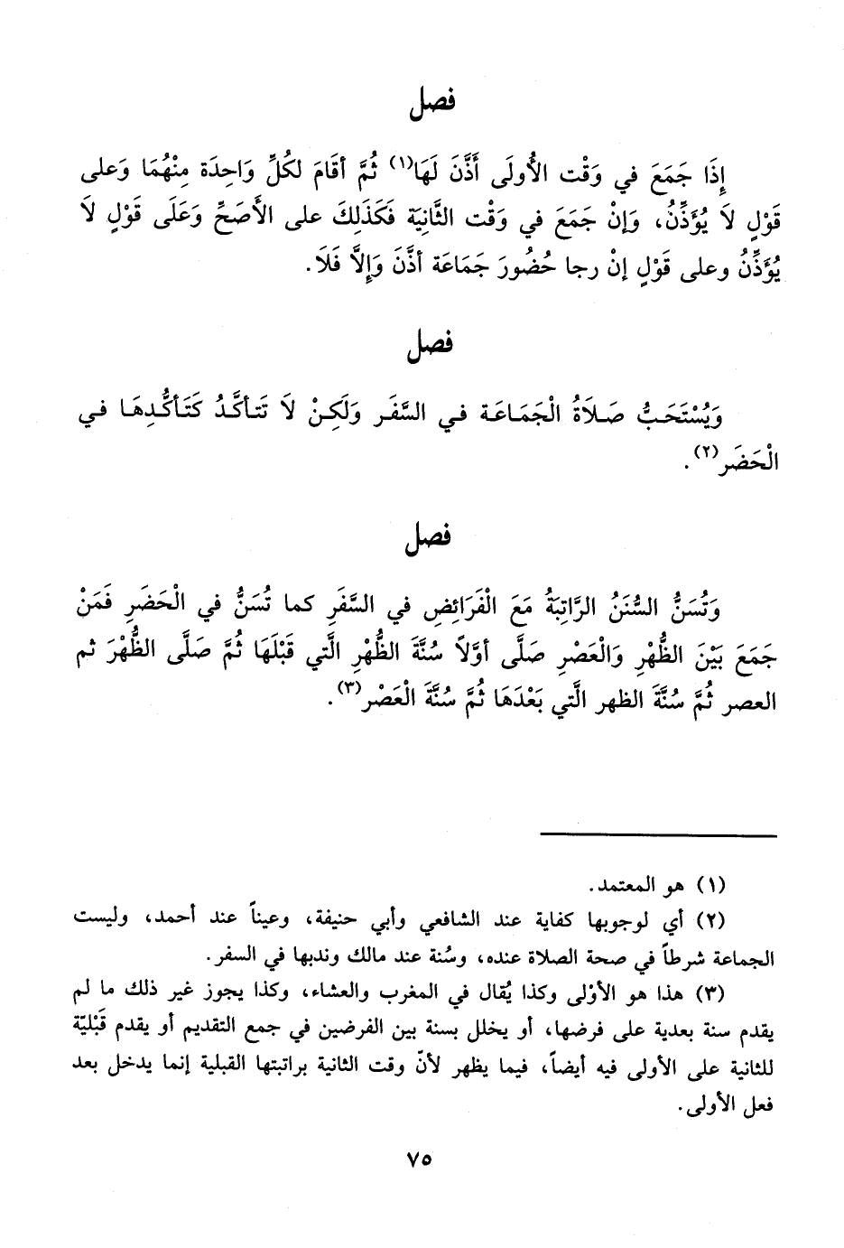 (¬3) هذا هو الأوْلى وكذا يقال في المغرب والعشاء، وكذا يجوز غير ذلك ما لم يقدم سنة بعدية على فرضها، أو يخلل بسنة بين الفرضين في جمع التقديم أو يقدم قَبْلية للثانية على الأولى فيه أيضاً، فيما يظهر لأن وقت الثانية براتبتها القبلية إنما يدخل بعد فعل الأولى.