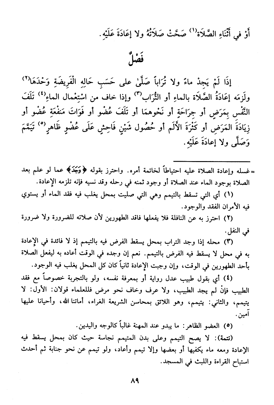 (¬1) أي التي تسقط بالتيمم وهي التي صليت بمحل يغلب فيه فقد الماء أو يستوي فيه الأمران الفقد والوجود.