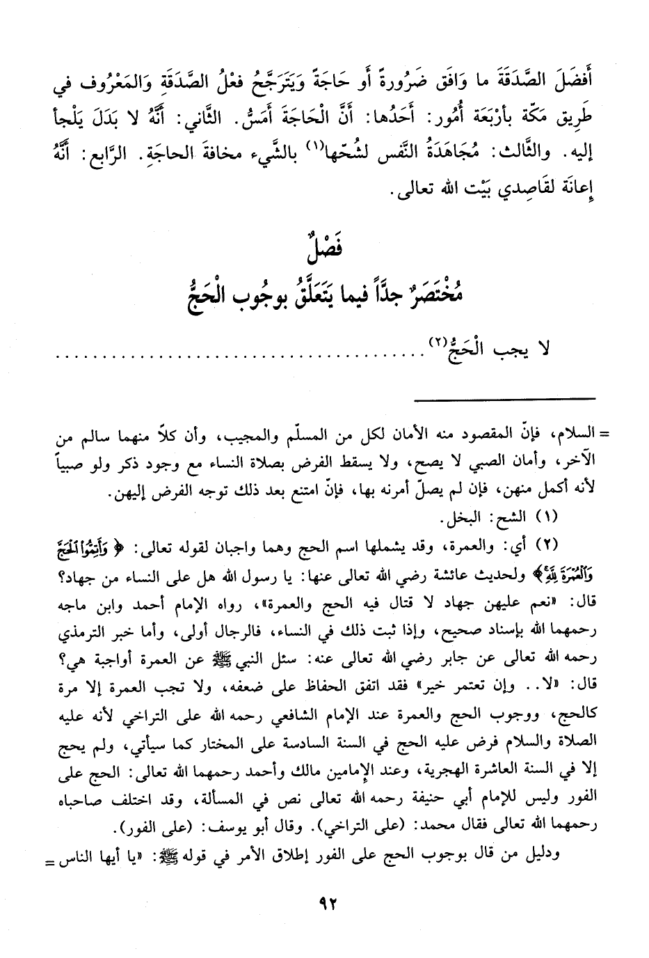(¬2) أي: والعمرة، وقد يشملها اسم الحج وهما واجبان لقوله تعالى: {وَأَتِمُّوا الْحَجَّ وَالْعُمْرَةَ لِلَّهِ} [البقرة: 196] ولحديث عائشة رضي الله تعالى عنها: يا رسول الله هل على النساء من جهاد؟