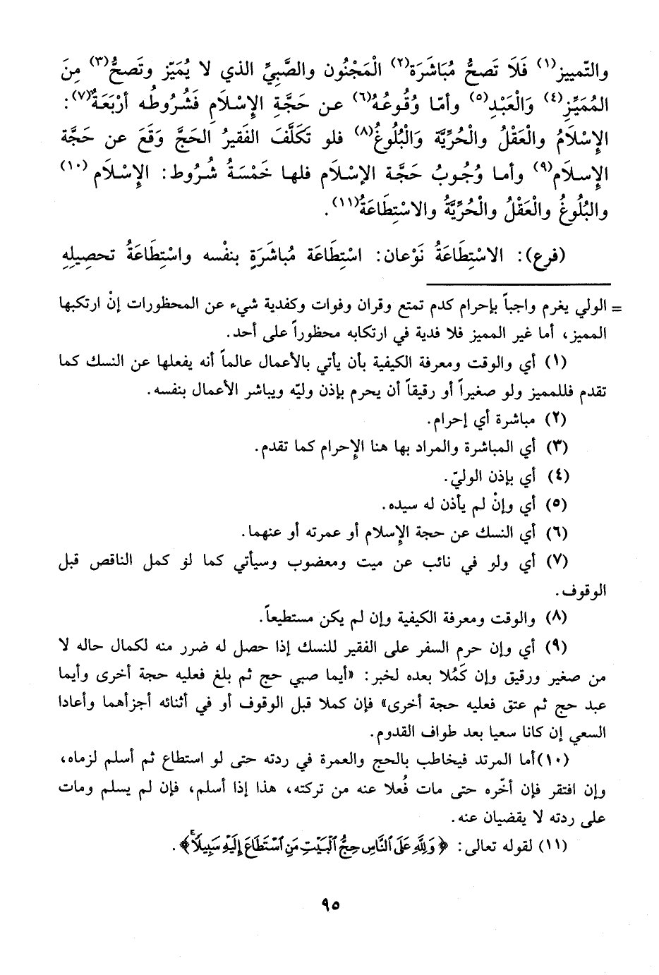 (¬11) لقوله تعالى: {وَلِلَّهِ عَلَى النَّاسِ حِجُّ الْبَيْتِ مَنِ اسْتَطَاعَ إِلَيْهِ سَبِيلًا} [آل عمران: 97].