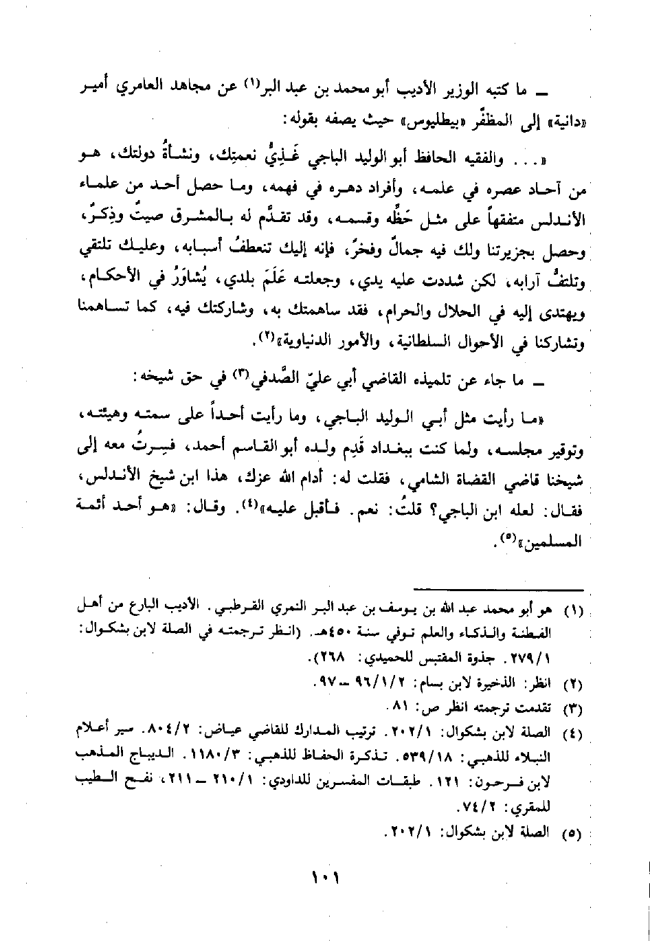 ( ... والفقيه الحافظ أبو الوليد الباجي غَذِيُّ نعمتِك، ونشأةُ دولتك، هو من آحاد عصره في علمه، وأفراد دهره في فهمه، وما حصل أحد من علماء