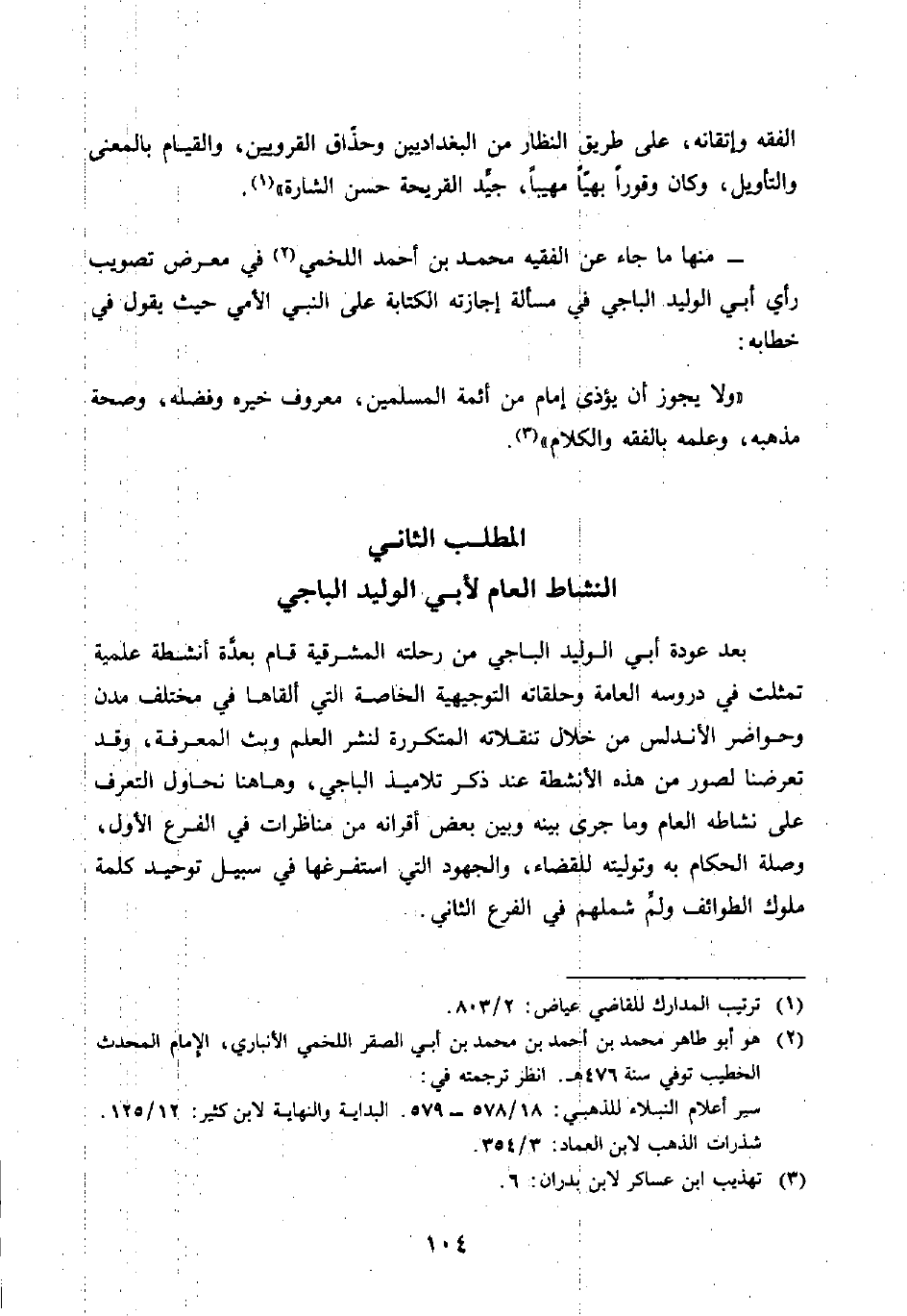 - منها ما جاء عن الفقيه محمد بن أحمد اللخمي (¬2) في معرض تصويب رأي أبي الوليد الباجي في مسألة إجازته الكتابة على النبي الأمي حيث يقول في خطابه: