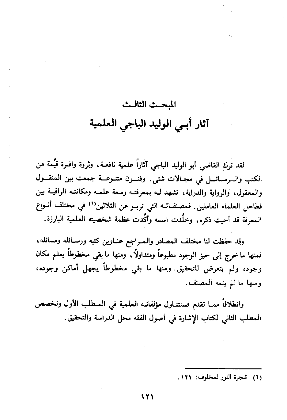 وانطلاقًا مما تقدم فسنتناول مؤلفاته العلمية في المطلب الأول ونخصص المطلب الثاني لكتاب الإشارة في أصول الفقه محل الدراسة والتحقيق.