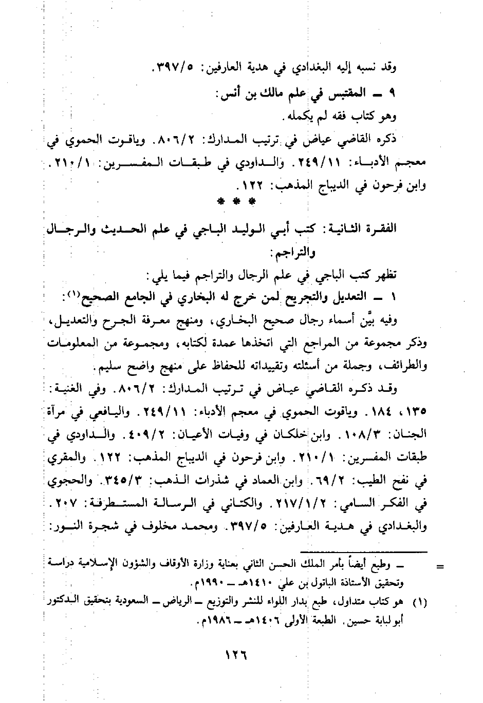 الفقرة الثانية: كتب أبي الوليد الباجي في علم الحديث والرجال والتراجم: