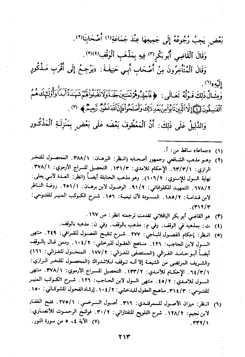 (¬6) انظر: ميزان الأصول للسمرقندي: 316. أصول السرخسي: 1/ 275. فتح الغفار لابن نجيم: 2/ 128. شرح التلويح للتفتازاني: 2/ 30. فواتح الرحموت للأنصاري: 1/ 332.
