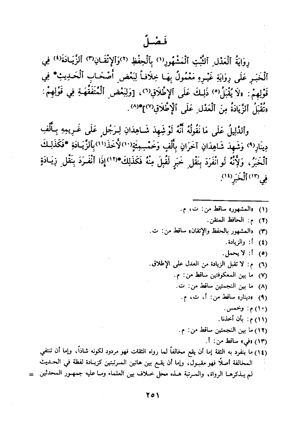 (¬14) ما ينفرد به الثقة إما أن يقع مخالفًا لما رواه الثقات فهو مردود لكونه شاذًا، وإما أن تنتفي المخالفة أصلًا فهو مقبول، وإما أن يقع بين هاتين المرتبتين كزيادة لفظة في الحديث لم يذكرها الرواة، والمرتبة هذه محل خلاف بين العلماء وما عليه جمهور المحدثين =