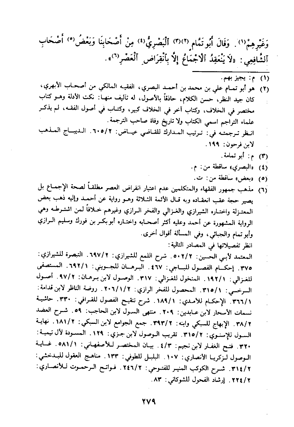 وَغَيْرِهِمْ (¬1). وَقَالَ أَبُو تَمَّامٍ (¬2) (¬3) الْبَصَرِيُّ (¬4) مِنْ أَصْحَابِنَا وَبَعْضُ (¬5) أَصْحَابِ الشَّافِعِي: (لَا يَنْعَقِدُ الْإِجْمَاعُ إِلَّا بِانْقِرَاضِ الْعَصْرِ (¬6)).