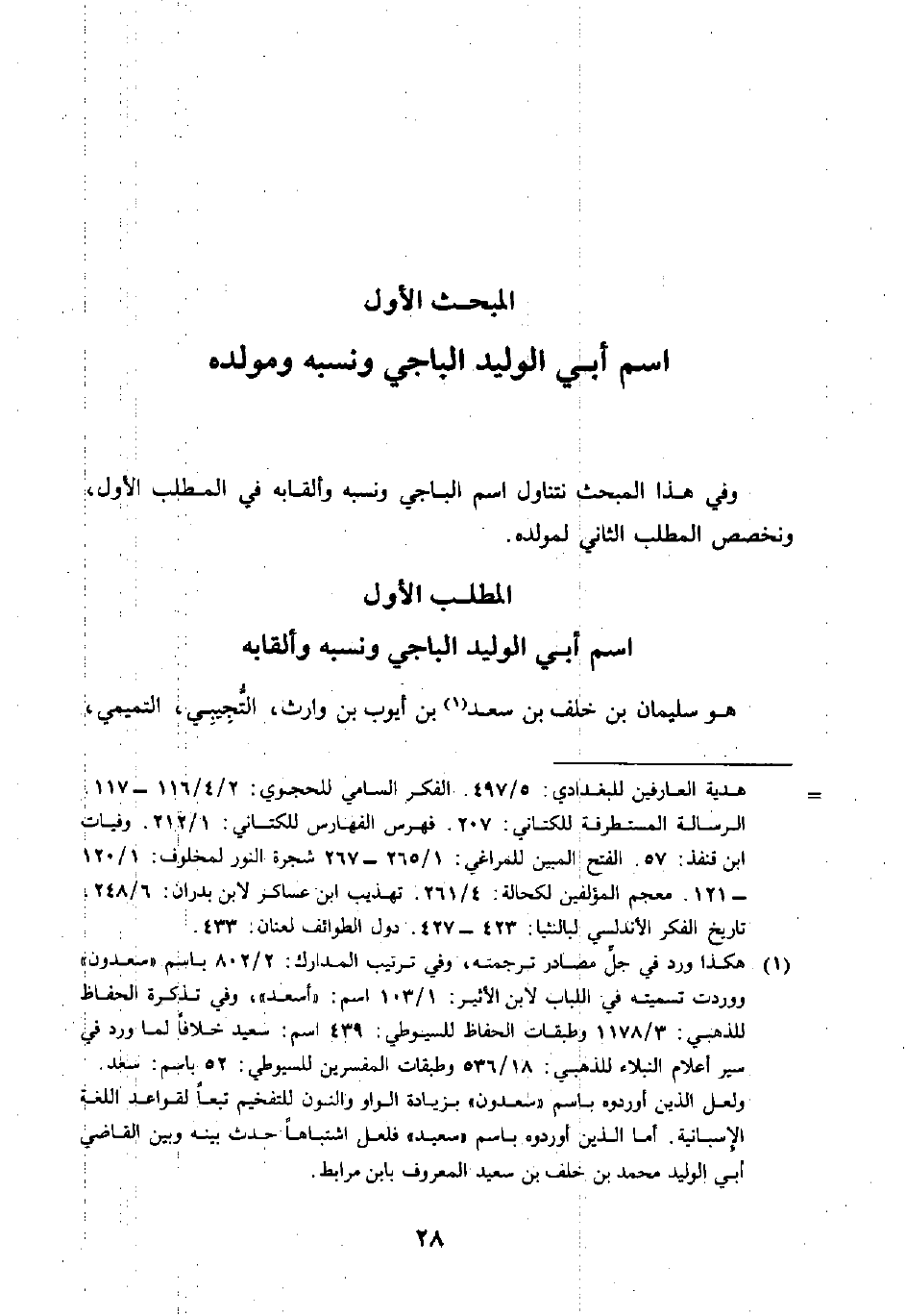 وفي هذا المبحث نتناول اسم الباجي ونسبه وألقابه في المطلب الأول، ونخصص المطلب الثاني لمولده.