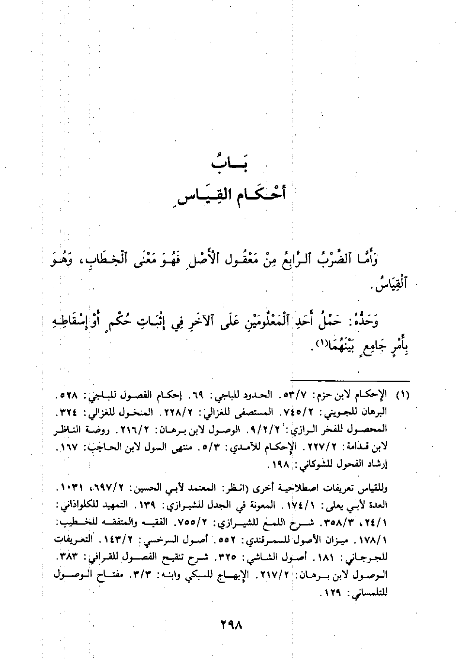 (¬1) الإحكام لابن حزم: 7/ 53. الحدود للباجي: 69. إحكام الفصول للباجي: 528. البرهان للجويني: 2/ 745. المستصفى للغزالي: 2/ 228. المنخول للغزالي: 324. المحصول للفخر الرازي: 2/ 2 / 9. الوصول لابن برهان: 2/ 216. روضة الناظر لابن قدامة: 2/ 227. الإحكام للآمدي: 5/ 3. منتهى السول لابن الحاجب: 167. إرشاد الفحول للشوكاني: 198.