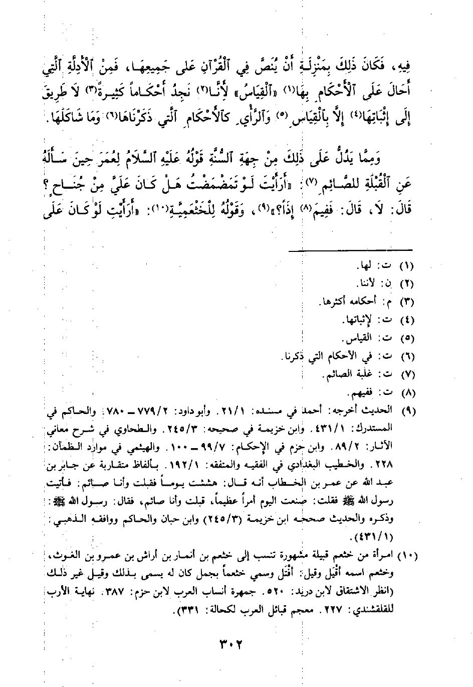 (¬9) الحديث أخرجه: أحمد في مسنده: 1/ 21. وأبو داود: 2/ 779 - 780. والحاكم في المستدرك: 1/ 431. وابن خزيمة في صحيحه: 3/ 245. والطحاوي في شرح معاني الآثار: 2/ 89. وابن حزم في الإحكام: 7/ 99 - 100. والهيثمي في موارد الظمآن: 228. والخطيب البغدادي في الفقيه والمتفقه: 1/ 192. بألفاظ متقاربة عن جابر بن عبد الله عن عمر بن الخطاب أنه قال: هششت يوماَّ فقبلت وأنا صائم: فأتيت رسول الله - صلى الله عليه وسلم - فقلت: صنعت اليوم أمرًا عظيماٌ، قبلت وأنا صائم، فقال: رسول الله - صلى الله عليه وسلم -: وذكره والحديث صححه ابن خزيمة (3/ 245) وابن حبان والحاكم ووافقه الذهبي: (1/ 431).