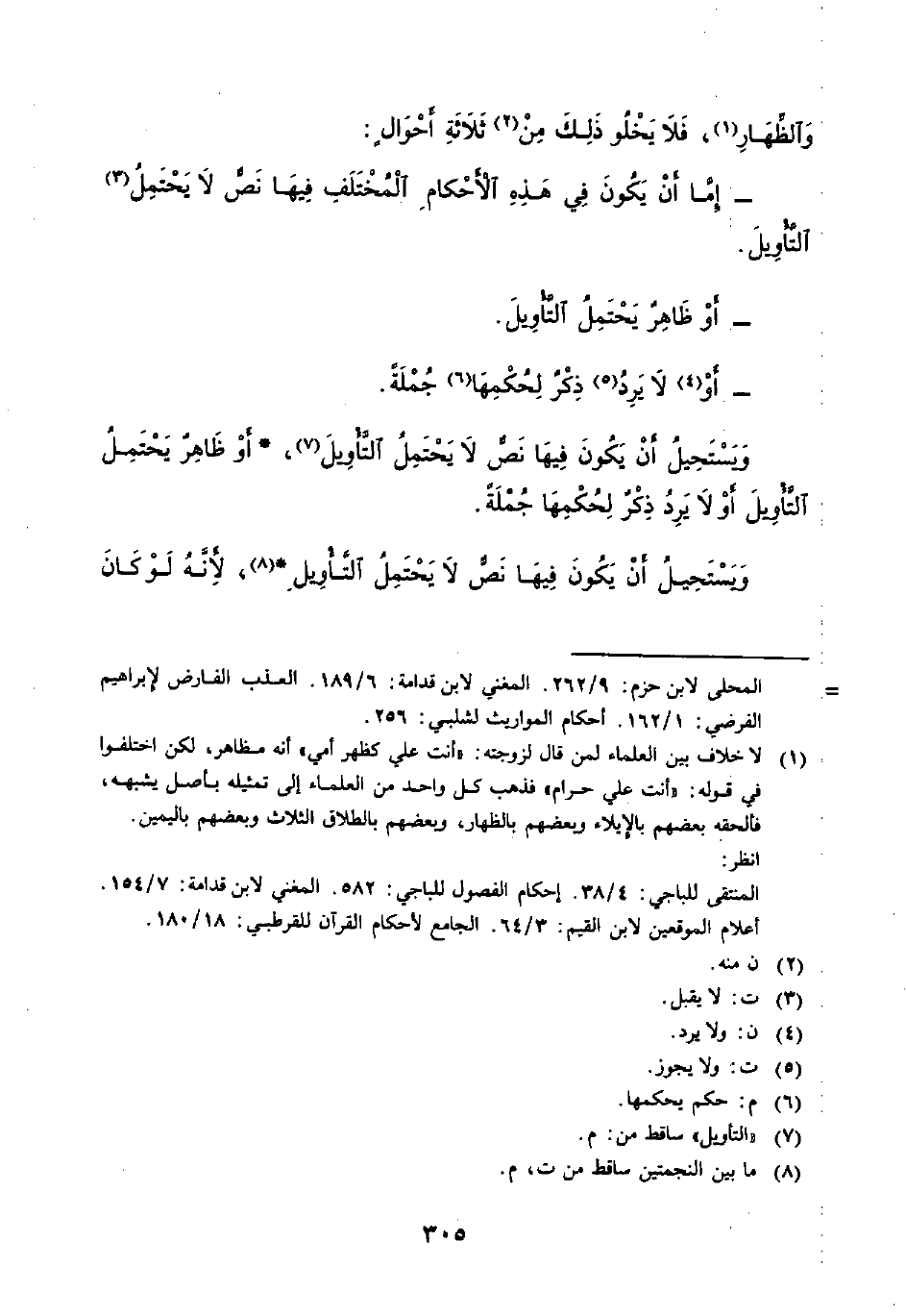 - إِمَّا أَنْ يَكُونَ في هَذِهِ الْأَحْكَامِ الْمُخْتَلِفِ فيهَا نَصٌّ لَا يَحْتَمِلُ (¬3) التَّأْوِيلَ.