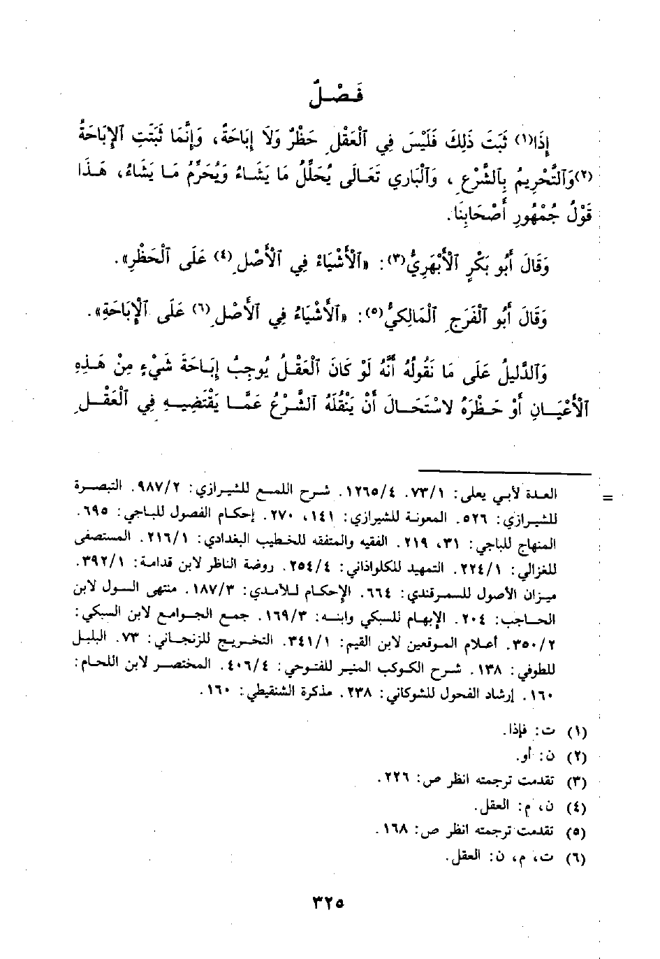 وَالدَّلِيلُ عَلَى مَا نَقُولُهُ أَنَّهُ لَوْ كَانَ الْعَقْلُ يُوجِبُ إِبَاحَةَ شَيْءٍ مِنْ هَذِهِ الْأَعْيَانِ أَوْ حَظْرَهُ لَاسْتَحَالَ أَنْ يَنْقُلَهُ الشَّرْعُ عَمَّا يَقْتَضِيهِ في الْعَقْلِ