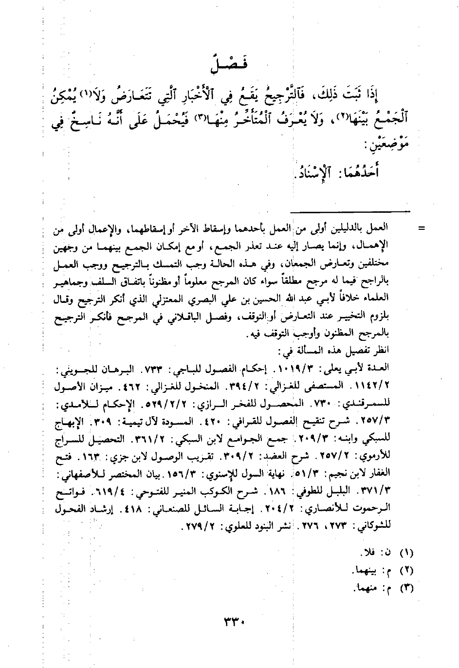 العدة لأبي يعلى: 3/ 1019. إحكام الفصول للباجي: 733. البرهان للجويني: 12/ 142. المستصفى للغزالي: 2/ 394. المنخول للغزالي: 462. ميزان الأصول للسمرقندي: 730. المحصول للفخر الرازي: 2/ 2 / 29. الإحكام للآمدي: 3/ 257. شرح تنقيح الفصول للقرافي: 420. المسودة لآل تيمية: 309. الإبهاج للسبكي وابنه: 3/ 209. جمع الجوامع لابن السبكي: 2/ 361. التحصيل للسراج الأرموي: 2/ 257. شرح العضد: 2/ 309. تقريب الوصول لابن جزي: 163. فتح الغفار لابن نجيم: 3/ 51. نهاية السول للإسنوي: 3/ 156. بيان المختصر للأصفهاني: 3/ 371. البلبل للطوفي: 186. شرح الكوكب المنير للفتوحي: 4/ 619. فواتيح الرحموت للأنصاري: 2/ 204. إجابة السائل للصنعاني: 418. إرشاد الفحول للشوكاني: 273، 276. نشر البنود للعلوي: 2/ 279.
