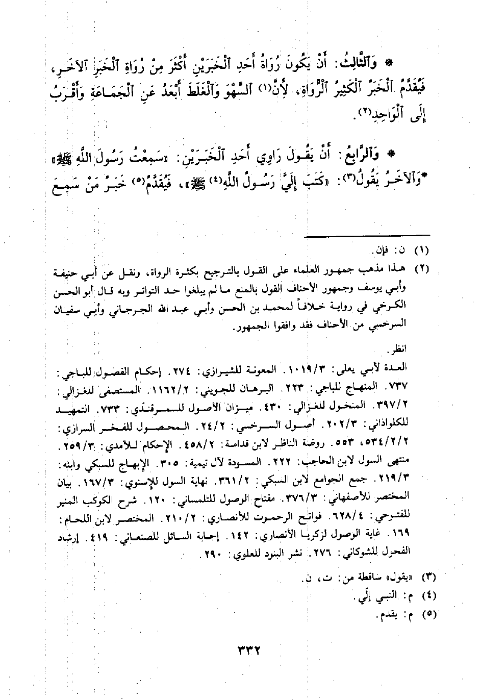 * وَالثَّالِثُ: أَنْ يَكُونَ رُوَاةُ أَحَدِ الْخَبَرَيْنِ أَكْثَرَ مِنْ رُوَاةِ الْخَبَرِ الْآخَرِ، فَيُقَدَّمُ الْخَبَرُ الْكَثِيرُ الرُّوَاةِ، لِأَنَّ (¬1) السَّهْوَ وَالْغَلَطَ أَبْعَدُ عَنِ الْجَمَاعَةِ وَأَقْرَبُ إِلَى الْوَاحِدِ (¬2).