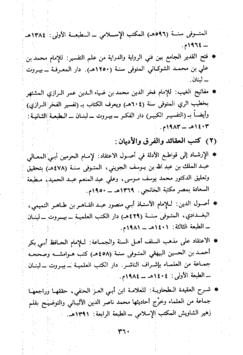(2) كتب العقائد والفرق والأديان: