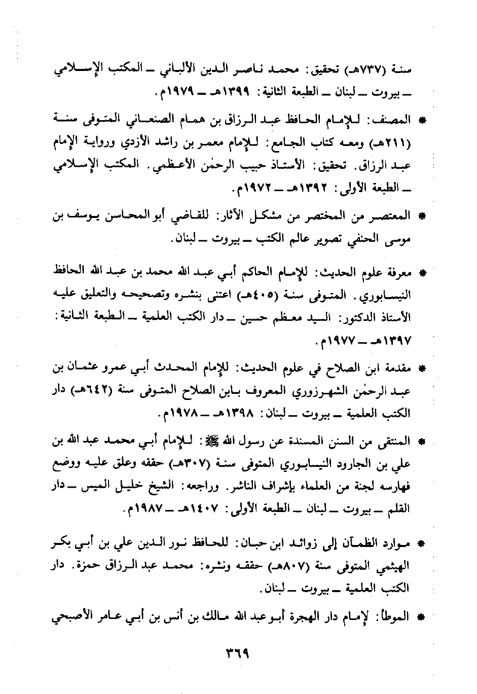 * موارد الظمآن إلى زوائد ابن حبان: للحافظ نور الدين علي بن أبي بكر الهيثمي المتوفى سنة (807) حققه ونشره: محمد عبد الرزاق حمزة. دار الكتب العلمية - بيروت - لبنان.