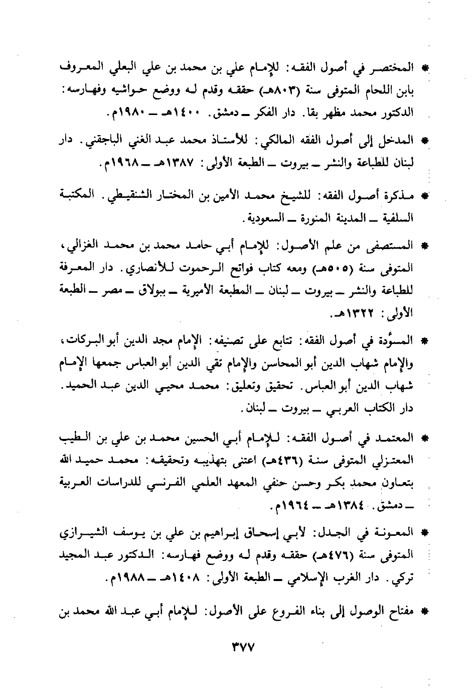 * المختصر في أصول الفقه: للإمام علي بن محمد بن علي البعلي المعروف بابن اللحام المتوفى سنة (803 هـ) حققه وقدم له ووضع حواشيه وفهارسه: الدكتور محمد مظهر بقا. دار الفكر - دمشق. 1400 هـ - 1980 م.