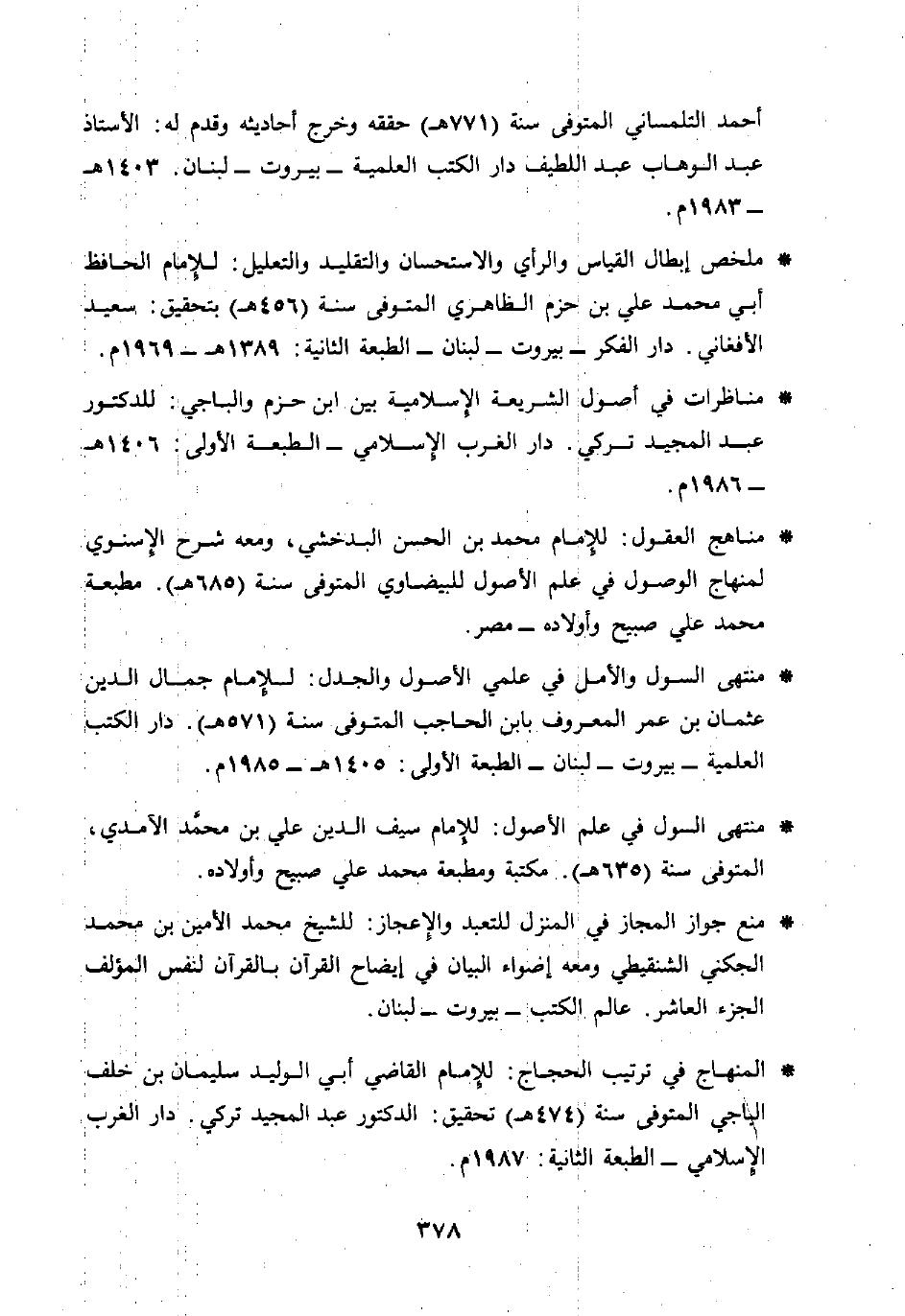 * المنهاج في ترتيب الحجاج: للإمام القاضي أبي الوليد سليمان بن خلف الباجي المتوفى سنة (474 هـ) تحقيق: الدكتور عبد المجيد تركي. دار الغرب الإسلامي - الطبعة الثانية: 1987 م.