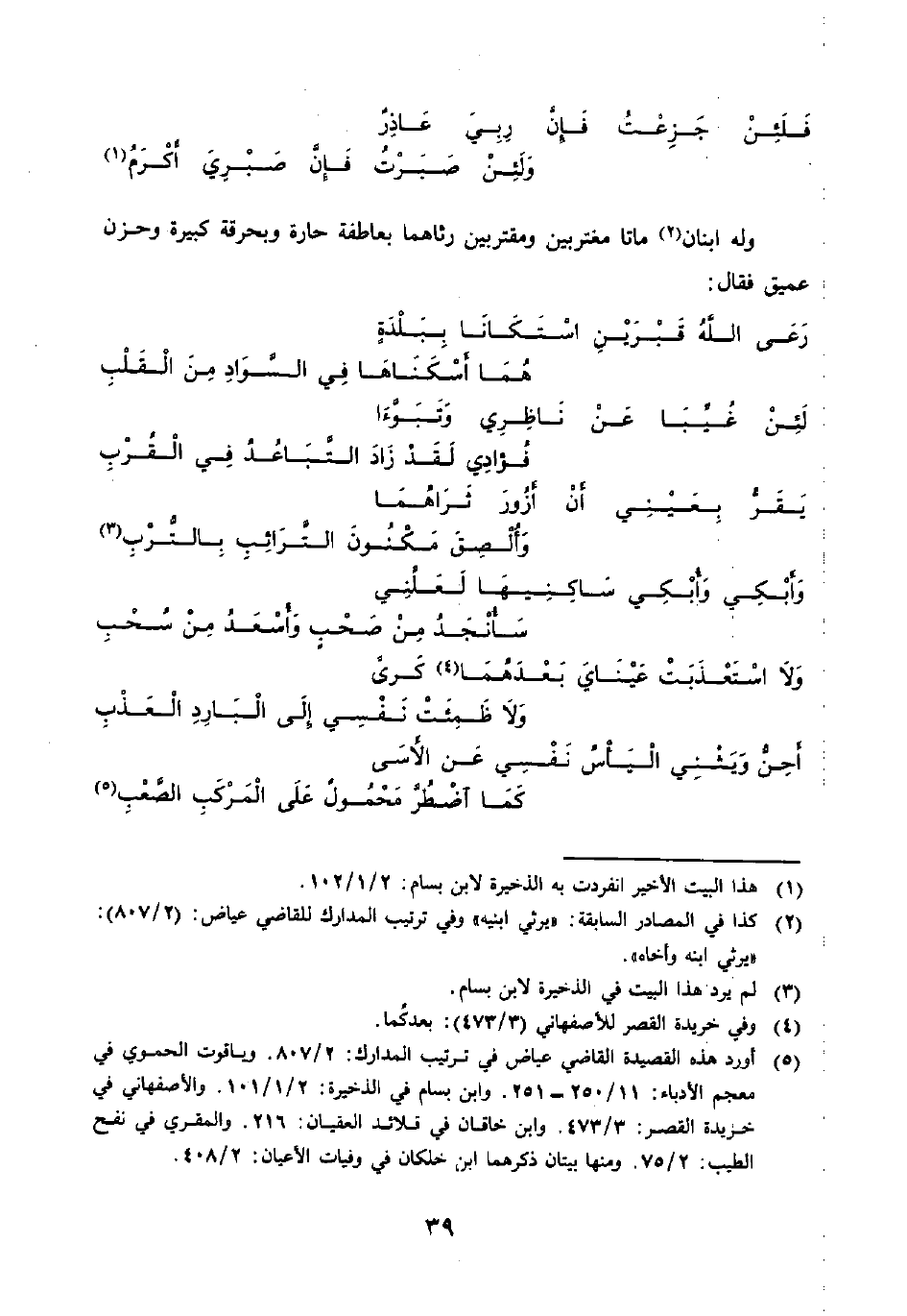 وله ابنان (¬2) ماتا مغتربين ومقتربين رئاهما بعاطفة حارة وبحرقة كبيرة وحزن عميق فقال: