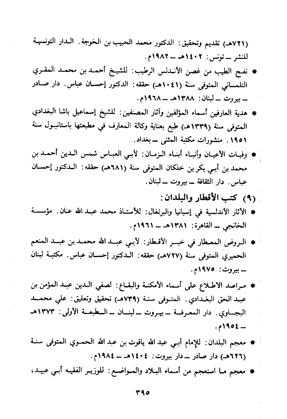 * نفح الطيب من غصن الأندلس الرهيب: للشيخ أحمد بن محمد المقري التلمساني المتوفى سنة (1041 هـ) حققه: الدكتور إحسان عباس. دار صادر - بيروت - لبنان: 1388 هـ - 1968 م.