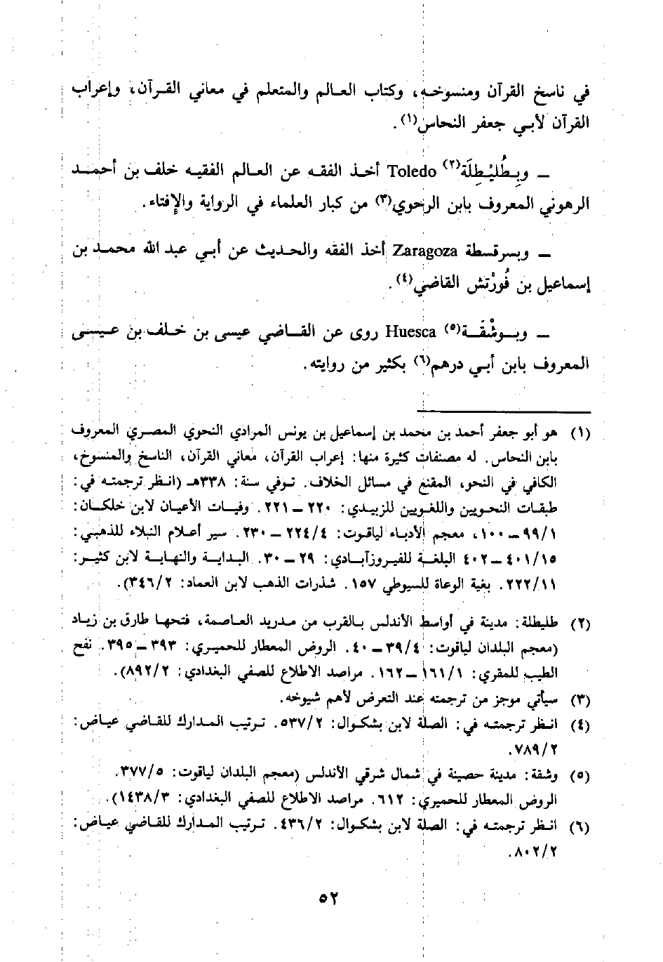 (¬2) طليطلة: مدينة في أواسط الأندلس بالقرب من مدريد العاصمة، فتحها طارق بن زياد (معجم البلدان لياقوت: 4/ 39 - 40. الروض المعطار للحميري: 393 - 395. نفح الطيب للمقري: 1/ 161 - 162. مراصد الاطلاع للصفي البغدادي: 2/ 892).