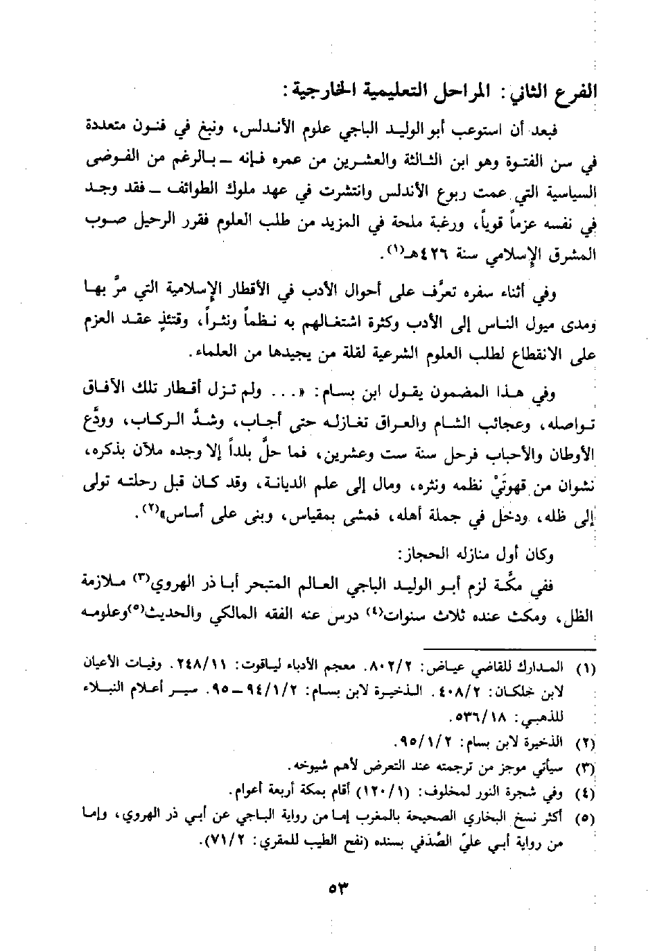 ففي مكَّة لزم أبو الوليد الباجي العالم المتبحر أبا ذر الهروي (¬3) ملازمة الظل، ومكث عنده ثلاث سنوات (¬4) درس عنه الفقه المالكي والحديث (¬5) وعلومه