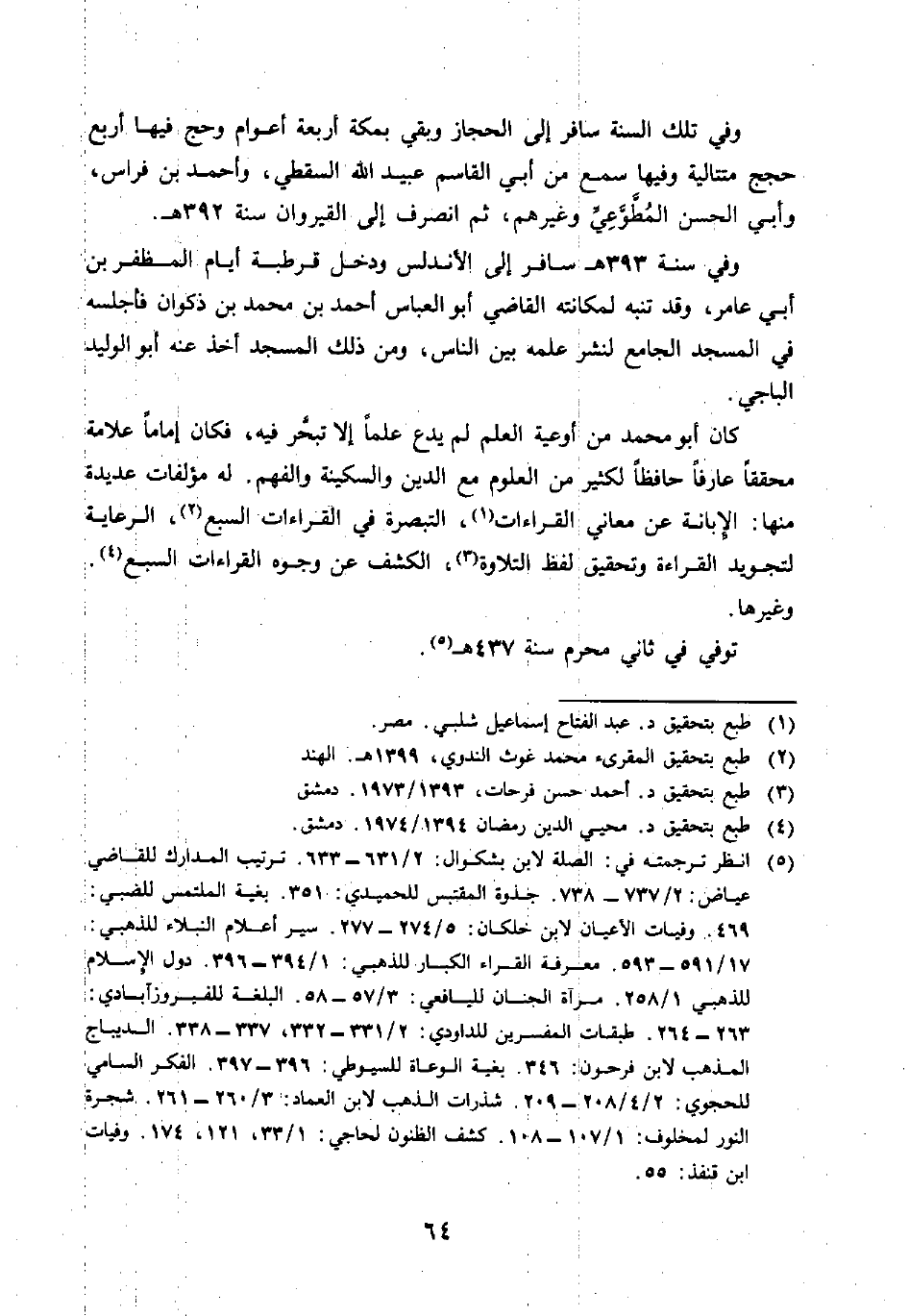 (¬5) انظر ترجمته في: الصلة لابن بشكوال: 2/ 631 - 633. ترتيب المدارك للقاضي عياض: 2/ 737 - 738. جذوة المقتس للحميدي: 351. بغية الملتمس للضبي: 469. وفيات الأعيان, لابن خلكان: 5/ 274 - 277. سير أعلام النبلاء للذهبي: 17/ 591 - 593. معرفة القراء الكبار للذهبي: 1/ 394 - 396. دول الإسلام للذهبي 1/ 258. مرآة الجنان لليافعي: 3/ 57 - 58. البلغة للفيروزآبادي: 263 - 264. طبقات المفسرين للداودي: 2/ 331 - 332، 337 - 338. الديباج المذهب لابن فرحون: 346. بغية الوعاة للسيوطي: 396 - 397. الفكر السامي للحجوي: 2/ 4/ 208 - 209. شذرات الذهب لابن العماد: 3/ 260 - 261. شجرة النور لمخلوف: 1/ 107 - 108. كشف الظنون لحاجي: 1/ 33، 121، 174. وفيات ابن قنفذ: 55.