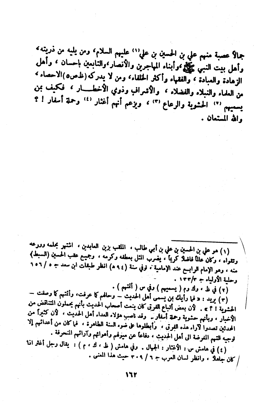 §مُقَدِّمَةٌ بِسْمِ اللَّهِ الرَّحْمَنِ الرَّحِيمِ الْحَمْدُ لِلَّهِ وَلَا إِلَهَ إِلَّا اللَّهُ، وَعَلَى مُحَمَّدٍ نَبِيِّ اللَّهِ وَآلِهِ صَلَوَاتُ اللَّهِ اعْتَرَضَتْ طَائِفَةٌ مِمَّنْ يَشْنَأُ الْحَدِيثَ وَيُبْغِضُ أَهْلَهُ، فَقَالُوا بِتَنَقُّصِ أَصْحَابِ الْحَدِيثِ وَالْإِزْرَاءِ بِهِمْ، وَأَسْرَفُوا فِي ذَمِّهِمْ وَالتَّقَوُّلِ عَلَيْهِمْ، وَقَدْ شَرَّفَ اللَّهُ الْحَدِيثَ وَفَضَّلَ أَهْلَهُ، وَأَعْلَى مَنْزِلَتَهُ، وَحَكَّمَهُ عَلَى كُلِّ نِحْلَةٍ، وَقَدَّمَهُ عَلَى كُلِّ عَلْمٍ، وَرَفَعَ مِنْ ذِكْرِ مَنْ حَمَلَهُ وَعُنِيَ بِهِ، فَهُمْ بَيْضَةُ الدِّينِ وَمَنَارُ الْحُجَّةِ، وَكَيْفَ لَا يَسْتَوْجِبُونَ الْفَضِيلَةَ، وَلَا يَسْتَحِقُّونَ الرُّتْبَةَ الرَّفِيعَةَ، وَهُمُ الَّذِينَ حَفِظُوا عَلَى الْأُمَّةِ هَذَا الدِّينَ، وَأَخْبَرُوا عَنْ أَنْبَاءِ التَّنْزِيلِ، وَأَثْبَتُوا نَاسِخَهُ وَمَنْسُوخَهُ وَمُحْكَمَهُ وَمُتَشَابِهَهُ، وَمَا عَظَّمَهُ اللَّهُ عَزَّ وَجَلَّ بِهِ مِنْ شَأْنِ الرَّسُولِ صَلَّى اللهُ عَلَيْهِ وَسَلَّمَ، فَنَقَلُوا شَرَائِعَهُ، وَدَوَّنُوا مَشَاهِدَهُ، وَصَنَّفُوا أَعْلَامَهُ وَدَلَائِلَهُ، وَحَقَّقُوا مَنَاقِبَ عِتْرَتِهِ، وَمَآثِرَ آبَائِهِ وَعَشِيرَتِهِ، وَجَاءُوا بِسِيَرِ الْأَنْبِيَاءِ، وَمَقَامَاتِ الْأَوْلِيَاءِ، وَأَخْبَارِ الشُّهَدَاءِ وَالصِّدِّيقِينَ، وَعَبَّرُوا عَنْ جَمِيعِ فِعْلِ النَّبِيِّ صَلَّى اللهُ عَلَيْهِ وَسَلَّمَ، فِي سَفَرِهِ وَحَضَرِهِ، وَظَعْنِهِ وَإِقَامَتِهِ، وَسَائِرِ أَحْوَالِهِ، مِنْ مَنَامٍ وَيَقَظَةٍ، وَإِشَارَةٍ وَتَصْرِيحٍ، وَصَمْتٍ وَنُطْقٍ، وَنُهُوضٍ وَقُعُودٍ، وَمَأْكَلٍ وَمَشْرَبٍ، وَمَلْبَسٍ وَمَرْكَبٍ، وَمَا كَانَ سَبِيلَهُ فِي حَالِ الرِّضَا وَالسُّخْطِ، وَالْإِنْكَارِ وَالْقَبُولِ، حَتَّى الْقُلَامَةَ مِنْ ظُفُرِهِ، مَا كَانَ يَصْنَعُ بِهَا، وَالنُّخَاعَةَ مِنْ فِيهِ أَيْنَ كَانَتْ وِجْهَتُهَا، وَمَا كَانَ يَقُولُهُ عِنْدَ كُلِّ فِعْلٍ يُحْدِثُهُ وَيَفْعَلُهُ عِنْدَ كُلِّ مَوْقِفٍ وَمَشْهَدٍ يَشْهَدُهُ تَعْظِيمًا لَهُ صَلَّى اللهُ عَلَيْهِ وَسَلَّمَ، وَمَعْرِفَةً بِأَقْدَارِ مَا ذُكِرَ عَنْهُ وَأُسْنِدَ إِلَيْهِ، فَمَنْ عَرَفَ لِلْإِسْلَامِ حَقَّهُ، وَأَوْجَبَ لِلرَّسُولِ حُرْمَتُهُ، أَكْبَرَ أَنْ يَحْتَقِرَ مَنْ عَظَّمَ اللَّهُ شَأْنَهُ، وَأَعْلَى مَكَانَهُ، وَأَظْهَرَ حُجَّتَهُ وَأَبَانَ فَضِيلَتَهُ، وَلَمْ يَرْتَقِ بِطَعْنِهِ إِلَى حِزْبِ الرَّسُولِ وَأَتْبَاعِ الْوَحْيِ، وَأَوْعِيَةِ الدِّينِ، وَنَقَلَةِ الْأَحْكَامِ وَالْقُرْآنِ، الَّذِينَ ذَكَرَهُمُ اللَّهُ عَزَّ وَجَلَّ فِي التَّنْزِيلِ، فَقَالَ: {وَالَّذِينَ اتَّبَعُوهُمْ بِإِحْسَانٍ} [التوبة: 100] فَإِنَّكَ إِنْ أَرَدْتَ التَّوَصُّلَ إِلَى مَعْرِفَةِ هَذَا الْقَرْنِ، لَمْ يَذْكُرْهُمْ لَكَ إِلَّا رَاوٍ لِلْحَدِيثِ، مُتَحَقِّقٌ بِهِ، أَوْ دَاخِلٌ فِي حَيِّزِ أَهْلِهِ، وَمَنْ سِوَى ذَلِكَ فَرَبُّكَ بِهِمْ أَعْلَمُ وَقَدْ كَانَ بَعْضُ شُيُوخِ الْعِلْمِ مِمَّنْ جَلَسَ مَجْلِسَ الرِّيَاسَةِ وَاسْتَحَقَّهَا لِعِلْمِهِ وَفَضْلِهِ، لَحِقَهُ بِمَدِينَةِ السَّلَامِ مِنْ أَهْلِ الْحَدِيثِ جَفَاءٌ، قَلِقَ عِنْدَهُ، وَغَمَّهُ مَا شَاهَدَ مِنْ عَقْدِ الْمَجَالِسِ وَنَصْبِ الْمَنَابِرِ لِغَيْرِهِ، وَتَكَاثُفِ النَّاسِ فِي مَجْلِسِ مَنْ لَا يُدَانِيهِ فِي عِلْمِهِ وَمَحَلِّهِ، فَعَرَّضَ بِأَصْحَابِ الْحَدِيثِ فِي كَلَامٍ لَهُ، يَفْتَتِحُ بِهِ بَعْضَ مَا صَنَّفَ، فَقَالَ: يُتْرَكُ الْمُحَدِّثُ حَتَّى إِذَا بَلَغَ الثَّمَانِينَ مِنْ عُمْرِهِ وَكَانَ مَصِيرُهُ إِلَى قَبْرِهِ قِيلَ عِنْدَ الشَّيْخِ حَدِيثٌ غ