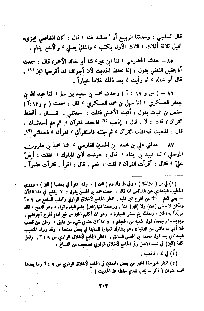 وَحَدَّثَ مُحَمَّدُ بْنُ سَعِيدِ بْنِ سَلْمٍ، ثَنَا عَبْدُ اللَّهِ بْنُ جَعْفَرٍ الْعَسْكَرِيُّ، ثَنَا سَهْلُ بْنُ مُحَمَّدٍ الْعَسْكَرِيُّ، قَالَ: سَمِعْتُ حَفْصَ بْنَ غِيَاثٍ يَقُولُ: أَتَيْتُ الْأَعْمَشَ فَقُلْتُ: حَدِّثْنِي قَالَ: أَتَحْفَظُ الْقُرْآنَ؟ قُلْتُ: لَا، قَالَ: " اذْهَبْ §فَاحْفَظِ الْقُرْآنَ، ثُمَّ هَلُمَّ أُحَدِّثُكَ قَالَ: فَذَهَبْتُ فَحَفِظْتُ الْقُرْآنَ، ثُمَّ جِئْتُهُ فَاسْتَقْرَأَنِي، فَقَرَأْتُهُ، فَحَدَّثَنِي "