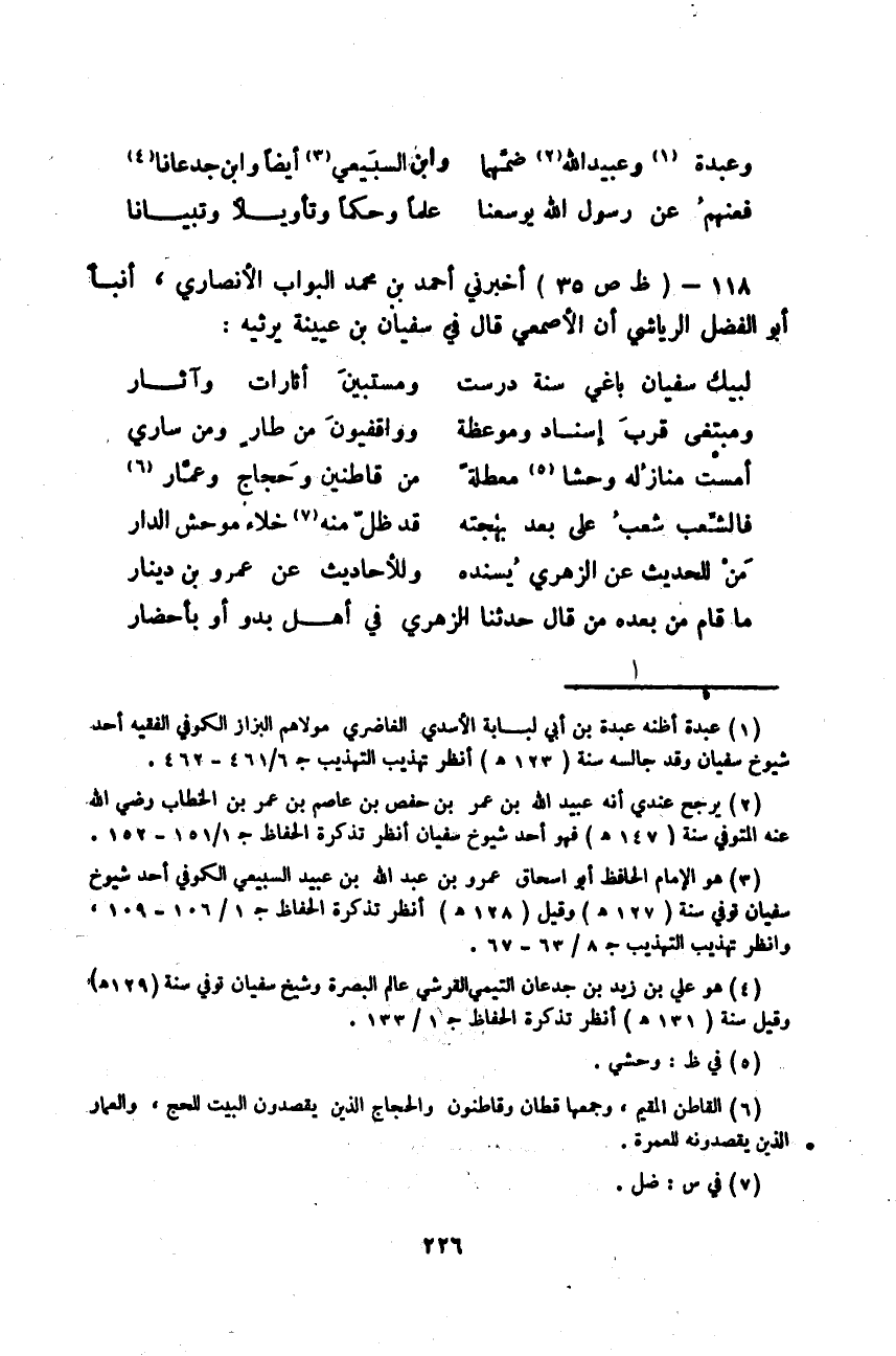أَخْبَرَنِي أَحْمَدُ بْنُ مُحَمَّدٍ الْبَوَّابُ الْأَنْصَارِيُّ، أَنْبَأَ أَبُو الْفَضْلِ الرِّيَاشِيُّ، أَنَّ الْأَصْمَعِيَ §قَالَ فِي سُفْيَانِ بْنِ عُيَيْنَةَ يُرْثِيهِ: