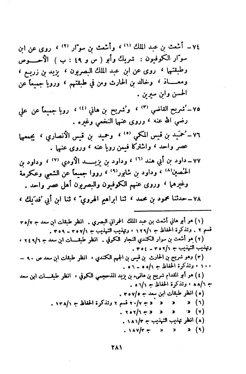 أَشْعَثُ بْنُ عَبْدِ الْمَلِكِ، وَأَشْعَثُ بْنُ سَوَّارٍ، رَوَى عَنِ ابْنِ سَوَّارٍ الْكُوفِيُّونَ: شَرِيكُ وَأَبُو الْأَحْوَصِ وَطَبَقَتُهُمَا، رَوَى عَنِ ابْنِ عَبْدِ الْمَلِكِ الْبَصْرِيُّونَ: يَزِيدُ بْنُ زُرَيْعٍ، وَمُعَاذٌ، وَخَالِدُ بْنُ الْحَارِثِ وَمَنْ فِي طَبَقِتِهِمْ وَرَوَيَا جَمِيعًا عَنِ الْحَسَنِ، وَابْنِ سِيرِينَ شُرَيْحُ الْقَاضِي، وَشُرَيْحُ بْنُ هَانِي، رَوَيَا جَمِيعًا عَنْ عَلِيٍّ رَضِيَ اللَّهُ عَنْهُ، وَرَوَى عَنْهُمَا النَّخَعِيُّ وَغَيْرُهُ حُمَيْدُ بْنُ قَيْسٍ الْمَكِّيُّ، وَحُمَيْدُ بْنُ قَيْسٍ الْأَنْصَارِيُّ، يَجْمَعُهُمَا عَصْرٌ وَاحِدٌ، وَاشْتَرَكَا فِيمَنْ رَوَيَا عَنْهُ، وَرَوَى عَنْهُمَا دَاوُدُ بْنُ أَبِي هِنْدَ، وَدَاوُدُ بْنُ يَزِيدَ الْأَوْدِيُّ، وَدَاوُدُ بْنُ الْحُصَيْنِ، وَدَاوُدُ بْنُ شَابُورَ، رَوَوْا جَمِيعًا عَنِ الشَّعْبِيِّ، وَعِكْرِمَةَ وَغَيْرِهِمَا، وَرَوَى عَنْهُمُ الْكُوفِيُّونَ وَالْبَصْرِيُّونَ أَهْلُ عَصْرٍ وَاحِدٍ