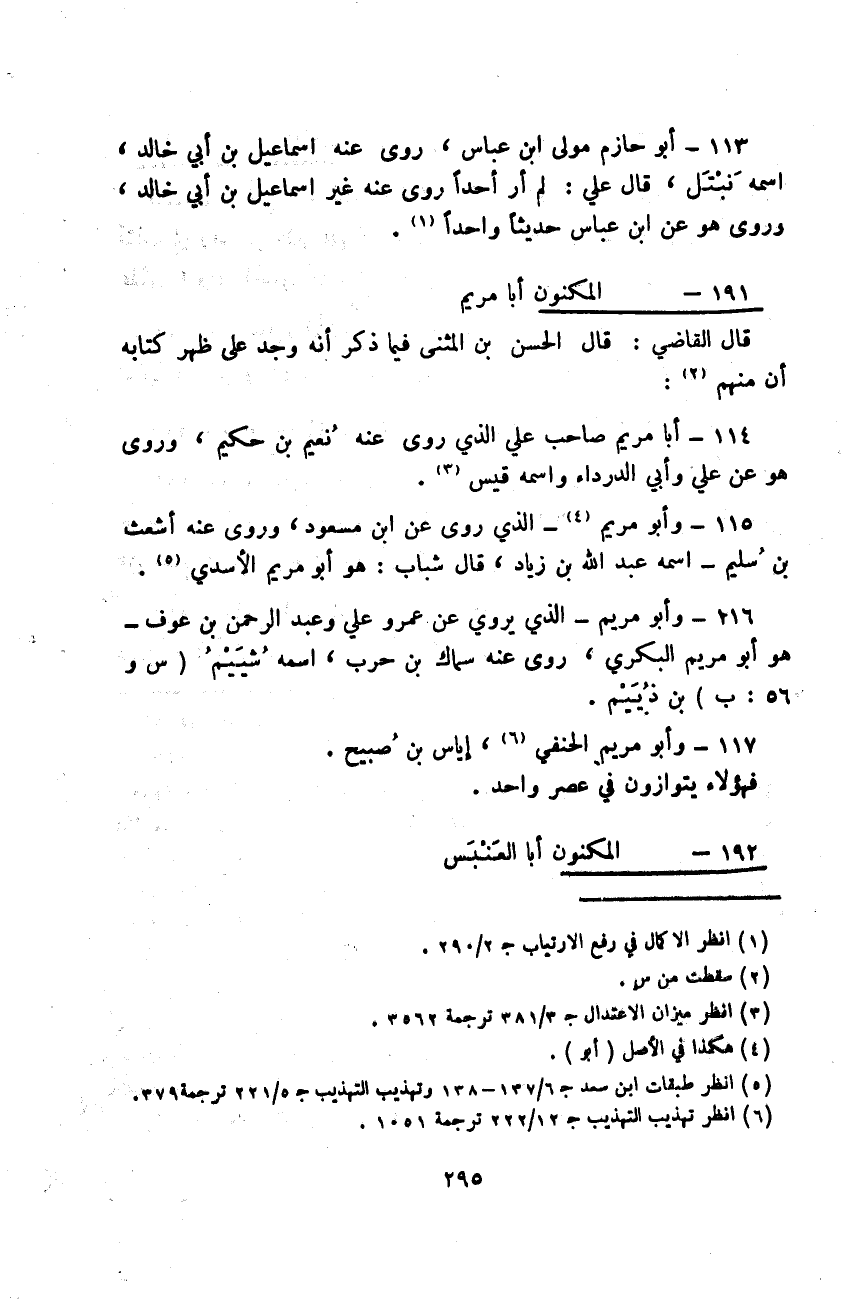 §الْمُكَنُّونَ أَبَا مَرْيَمَ قَالَ الْقَاضِي: قَالَ الْحَسَنُ بْنُ الْمُثَنَّى فِيمَا ذُكِرَ أَنَّهُ وَجَدَ عَلَى ظَهْرِ كِتَابِهِ أَنَّ مِنْهُمْ: أَبَا مَرْيَمَ صَاحِبَ عَلِيٍّ الَّذِي رَوَى عَنْهُ نُعَيْمُ بْنُ حَكِيمٍ، وَرَوَى هُوَ، عَنْ عَلِيٍّ وَأَبِي الدَّرْدَاءِ، وَاسْمُهُ قَيْسٌ وَأَبُو مَرْيَمَ، الَّذِي رَوَى عَنِ ابْنِ مَسْعُودٍ، وَرَوَى عَنْهُ أَشْعَثُ بْنُ سُلَيْمٍ، اسْمُهُ عَبْدُ اللَّهِ بْنُ زِيَادٍ، قَالَ شَبَابٌ: هُوَ أَبُو مَرْيَمَ الْأَسَدِيُّ وَأَبُو مَرْيَمَ، الَّذِي يَرْوِي عَنْ عُمَرَ وَعَلِيٍّ، وَعَبْدِ الرَّحْمَنِ بْنِ عَوْفٍ، هُوَ أَبُو مَرْيَمَ الْبَكْرِيُّ، رَوَى عَنْهُ سِمَاكُ بْنُ حَرْبٍ، اسْمُهُ شُيَيْمُ بْنُ ذُيَيْمَ وَأَبُو مَرْيَمَ الْحَنَفِيُّ إِيَاسُ بْنُ صُبَيْحٍ فَهَؤُلَاءِ يَتَوَازُونَ فِي عَصْرٍ وَاحِدٍ