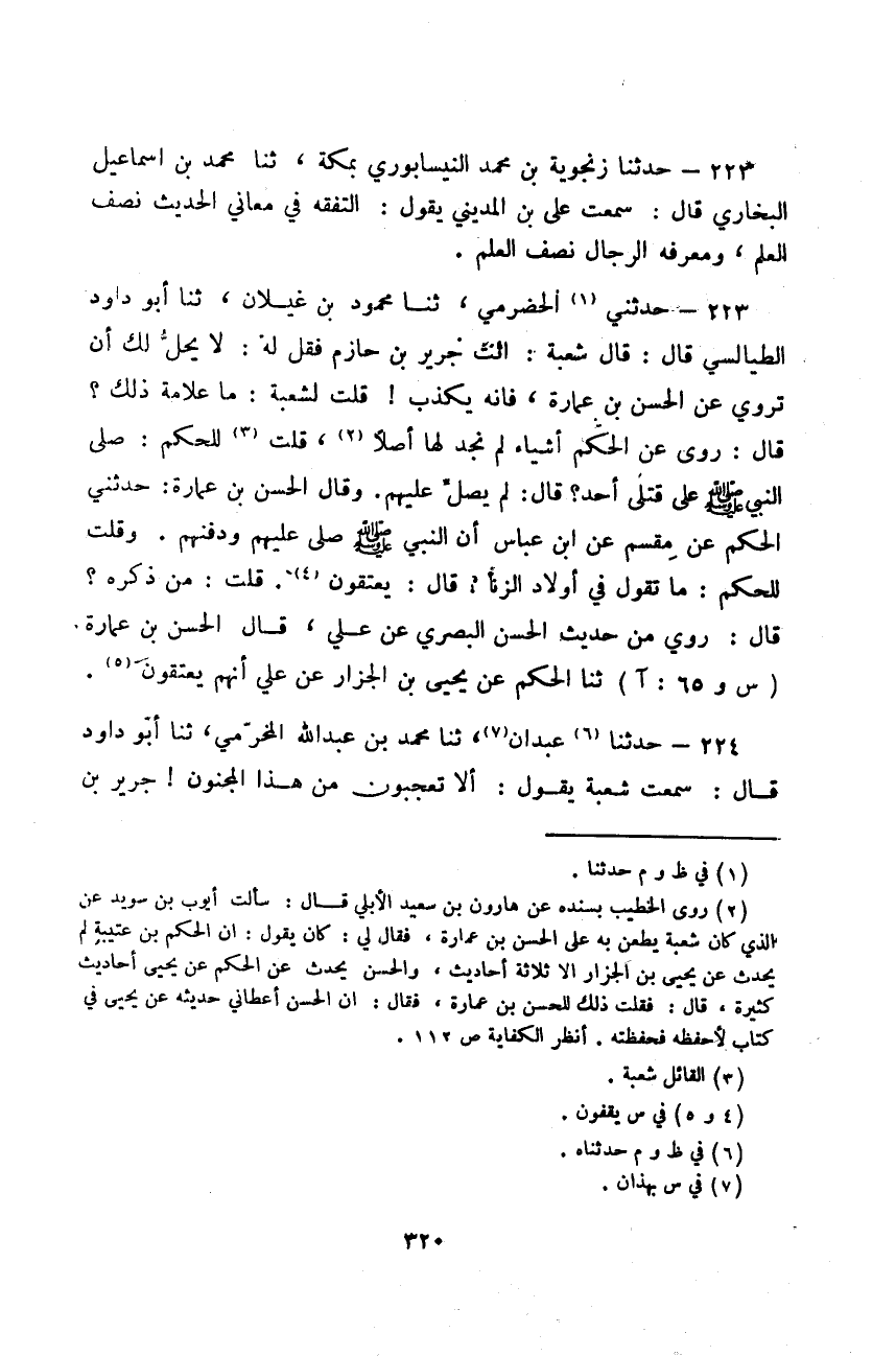 حَدَّثَنَا زَنْجُويَةُ بْنُ مُحَمَّدٍ النَّيْسَابُورِيُّ بِمَكَّةَ، ثَنَا مُحَمَّدُ بْنُ إِسْمَاعِيلَ الْبُخَارِيُّ قَالَ: سَمِعْتُ عَلِيَّ بْنَ الْمَدِينِيِّ يَقُولُ: «§التَّفَقُّهُ فِي مَعَانِي الْحَدِيثِ نِصْفُ الْعِلْمِ، وَمَعْرِفَةُ الرِّجَالِ نِصْفُ الْعِلْمِ»