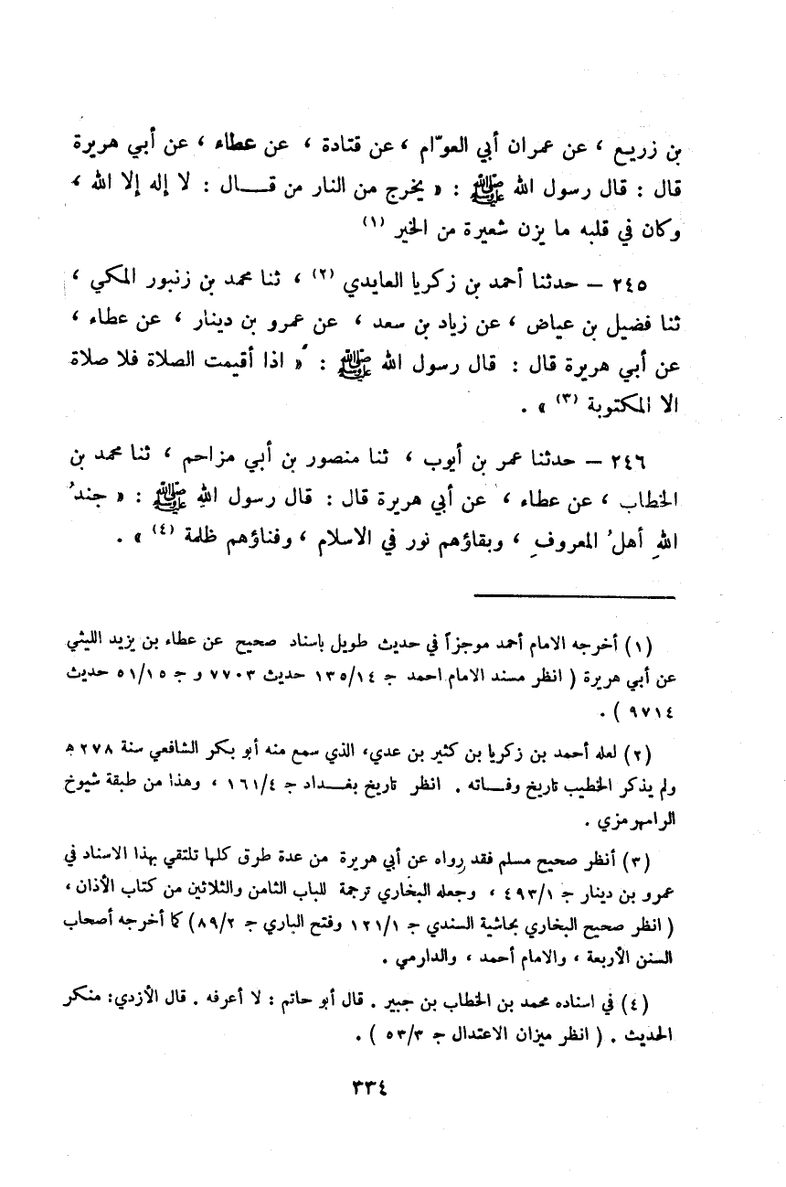 حَدَّثَنَا أَحْمَدُ بْنُ زَكَرِيَّا الْعَايِدِيُّ، ثَنَا مُحَمَّدُ بْنُ زُنْبُورٍ الْمَكِّيُّ، ثَنَا فُضَيْلُ بْنُ عِيَاضٍ، عَنْ زِيَادِ بْنِ سَعْدٍ، عَنْ عَمْرِو بْنِ دِينَارٍ، عَنْ عَطَاءٍ، عَنْ أَبِي هُرَيْرَةَ قَالَ: قَالَ رَسُولُ اللَّهِ صَلَّى اللهُ عَلَيْهِ وَسَلَّمَ: «§إِذَا أُقِيمَتِ الصَّلَاةُ فَلَا صَلَاةَ إِلَّا الْمَكْتُوبَةَ»