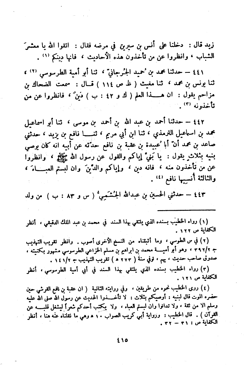 حَدَّثَنَا مُحَمَّدُ بْنُ حُمَيْدٍ الْجُرْجَانِيُّ، ثَنَا أَبُو أُمَيَّةَ الطُّرَسُوسِيُّ، ثَنَا يُونُسُ بْنُ مُحَمَّدٍ، ثَنَا مُغِيثٌ قَالَ: سَمِعْتُ الضَّحَّاكَ بْنَ مُزَاحِمٍ يَقُولُ: «إِنَّ هَذَا §الْعِلْمَ دِينٌ، فَانْظُرُوا عَنْ مَنْ تَأْخُذُونَهُ»