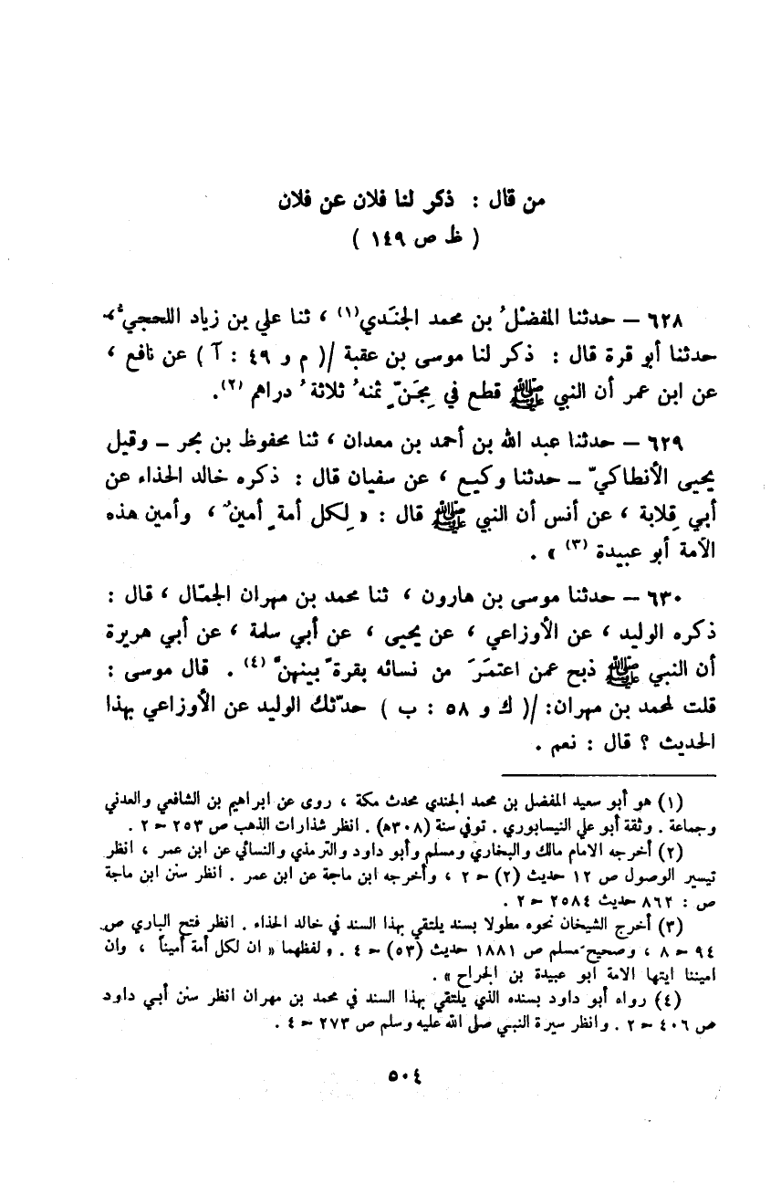 حَدَّثَنَا الْمُفَضَّلُ بْنُ مُحَمَّدٍ الْجَنَدِيُّ، ثَنَا عَلِيُّ بْنُ زِيَادٍ اللَّحْجِيُّ، حَدَّثَنَا أَبُو قُرَّةَ، قَالَ: ذَكَرَ لَنَا مُوسَى بْنُ عُقْبَةَ، عَنْ نَافِعٍ، عَنِ ابْنِ عُمَرَ: «أَنَّ النَّبِيَّ صَلَّى اللهُ عَلَيْهِ وَسَلَّمَ §قَطَعَ فِي مِجَنٍّ ثَمَنُهُ ثَلَاثَةُ دَرَاهِمَ»