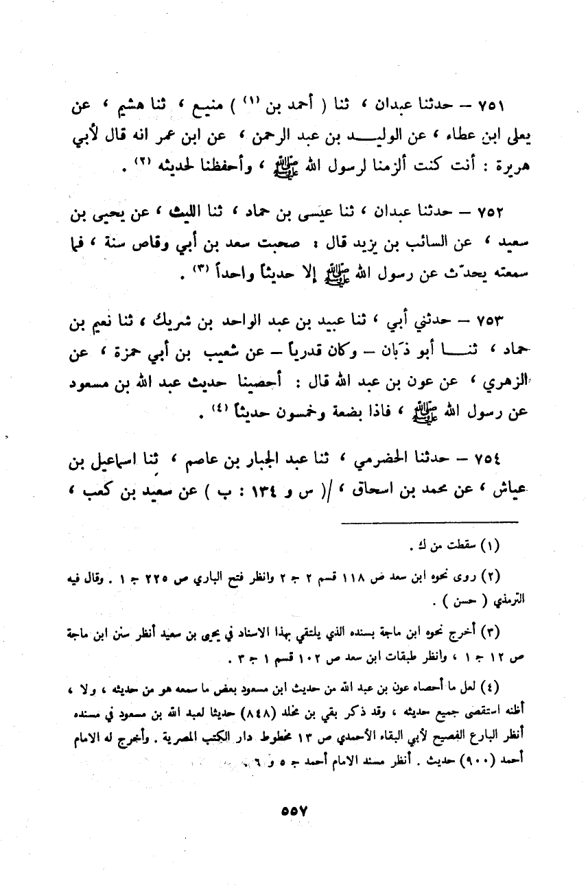 حَدَّثَنِي أَبِي، ثنا عُبَيْدُ بْنُ عَبْدِ الْوَاحِدِ بْنِ شَرِيكٍ، ثنا نُعَيْمُ بْنُ حَمَّادٍ، ثنا أَبُو ذَبَانَ، وَكَانَ قَدَرِيًّا، عَنْ شُعَيْبِ بْنِ أَبِي حَمْزَةَ، عَنِ الزُّهْرِيِّ، عَنْ عَوْنِ بْنِ عَبْدِ اللَّهِ قَالَ: «§أَحْصَيْنَا حَدِيثَ عَبْدِ اللَّهِ بْنِ مَسْعُودٍ عَنْ رَسُولِ اللَّهِ صَلَّى اللهُ عَلَيْهِ وَسَلَّمَ فَإِذَا بَضْعَةٌ وَخَمْسُونَ حَدِيثًا»