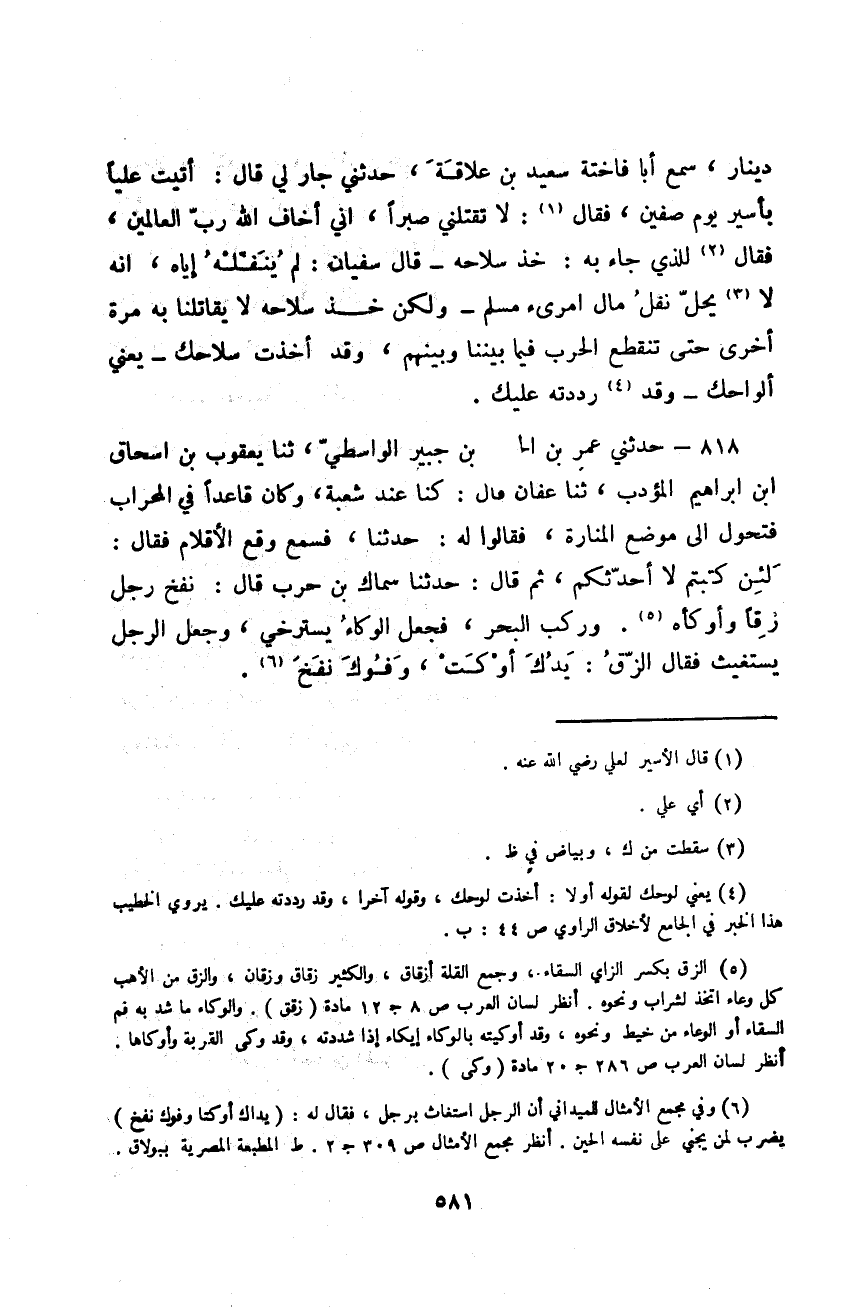 حَدَّثَنِي عُمَرُ بْنُ الْحَسَنِ بْنِ جُبَيْرٍ الْوَاسِطِيُّ، ثنا يَعْقُوبُ بْنُ إِسْحَاقَ بْنِ إِبْرَاهِيمَ الْمُؤَدِّبُ، ثنا عَفَّانُ، قَالَ: كُنَّا عِنْدَ شُعْبَةَ، وَكَانَ قَاعِدًا فِي الْمِحْرَابِ، فَتَحَوَّلَ إِلَى مَوْضِعِ الْمَنَارَةِ، فَقَالُوا لَهُ: حَدِّثْنَا فَسَمِعَ وَقْعَ الْأَقْلَامِ، فَقَالَ: لَئِنْ كَتَبْتُمْ لَا أُحَدِّثُكُمُ، ثُمَّ قَالَ: حَدَّثَنَا سِمَاكُ بْنُ حَرْبٍ قَالَ: " §نَفَخَ رَجُلٌ زِقًّا وَأَوْكَأَهُ وَرَكِبَ الْبَحْرَ فَجَعَلَ الْوِكَاءُ يَسْتَرْخِي، وَجَعَلَ الرَّجُلُ يَسْتَغِيثُ فَقَالَ الزِّقُّ: يَدُكَ أَوْكَتْ، وَفُوكَ نَفَخَ "