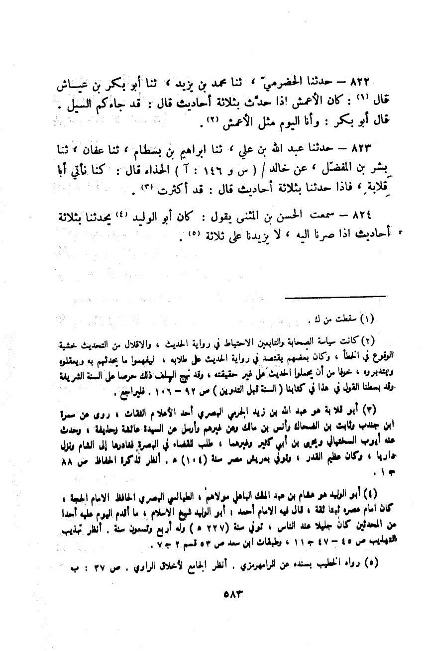 حَدَّثَنَا عَبْدُ اللَّهِ بْنُ عَلِيٍّ، ثنا إِبْرَاهِيمُ بْنُ بِسْطَامٍ، ثنا عَفَّانُ، ثنا بِشْرُ بْنُ الْمُفَضَّلِ، عَنْ خَالِدٍ الْحَذَّاءِ، قَالَ: " كُنَّا نَأْتِي أَبَا قِلَابَةَ، §فَإِذَا حَدَّثَنَا بِثَلَاثَةِ أَحَادِيثَ قَالَ: قَدْ أَكْثَرْتُ "