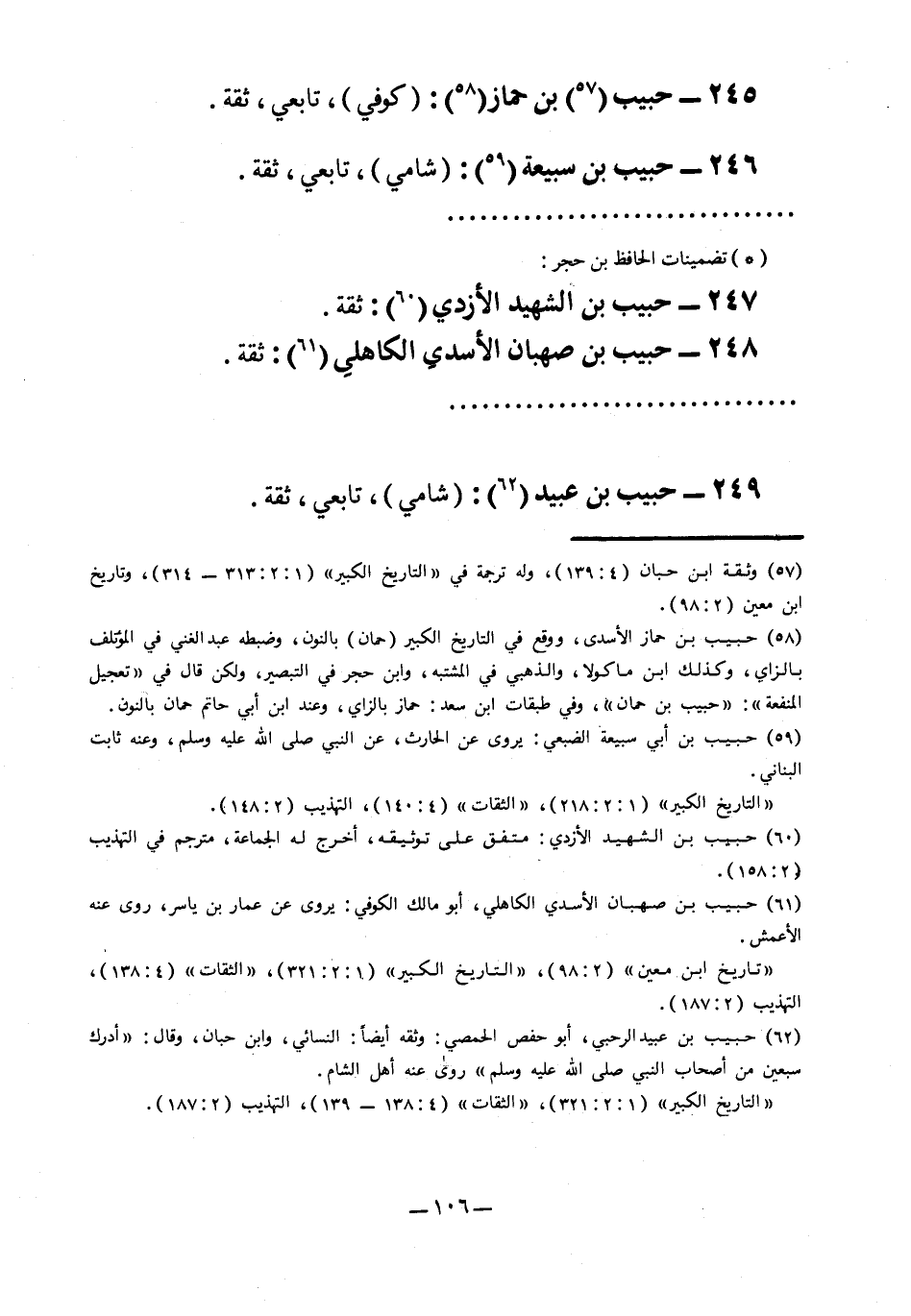 249- حبيب بن عبيد6: "شامي"، تابعي، ثقة.