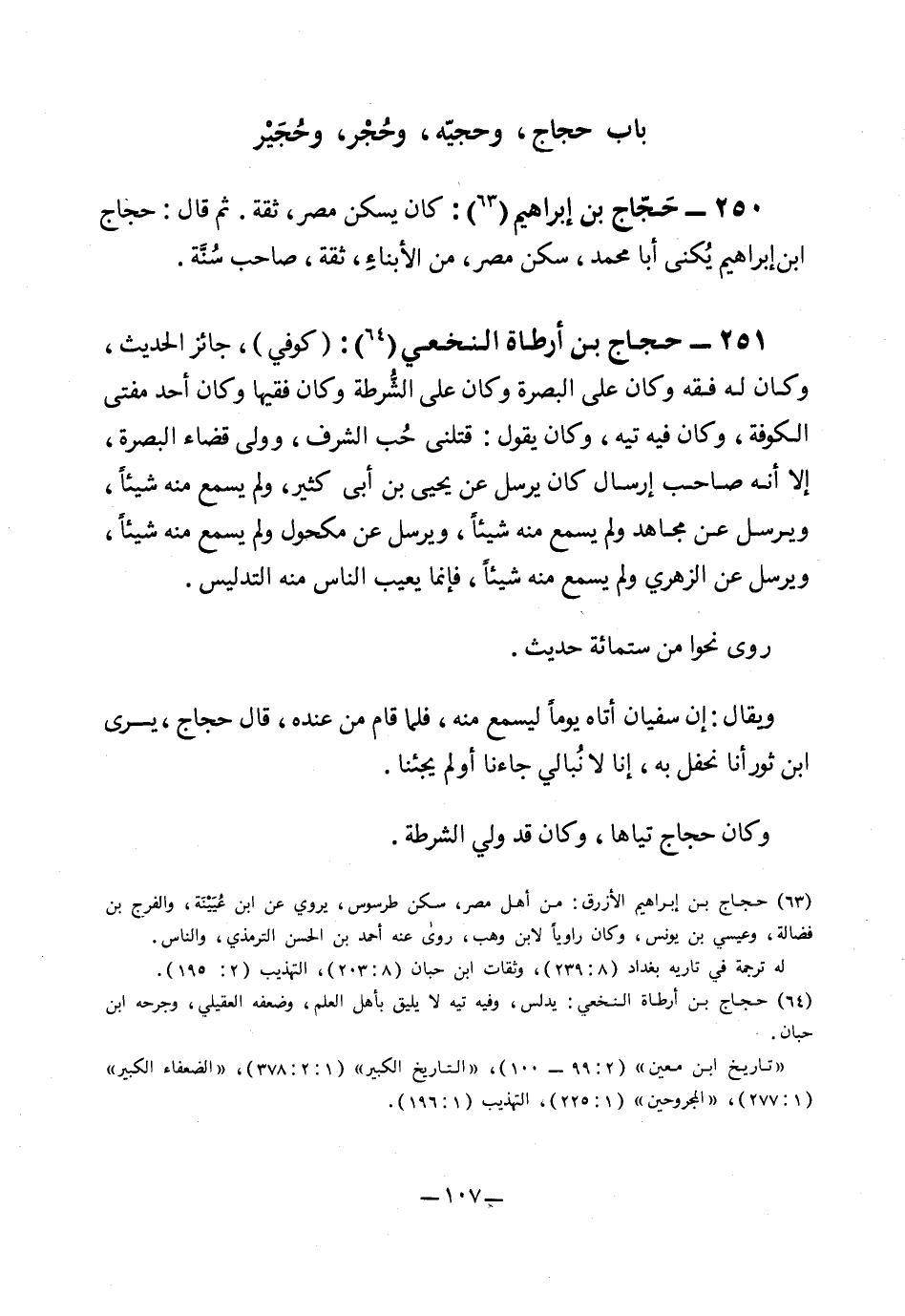 250- حجاج بن إبراهيم1: كان يسكن مصر، ثقة. ثم قال: حجاج بن إبراهيم يُكنى أبا محمد، سكن مصر، من الأبناء، ثقة، صاحب سنة.